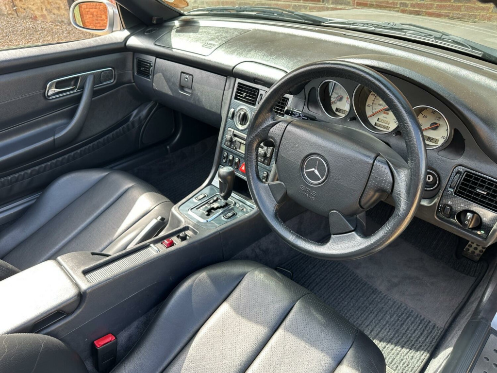 1999 Mercedes Benz SLK 230. Brilliant Silver Metallic with Black Leather upholstery. This stunning SLK has covered just 23,000 miles from new and had just 2 keepers. Supplied new by Sunningdale Carriage Company Ltd Mercedes dealers in Berkshire in January 1999 to Mr Droy of Ascot. He kept the car until May 2022, some 23 years and in that time covered just 18,000 miles. It was then purchased by its most recent keeper who enjoyed the car on sunny weekends and days out and covered just 5,000 miles taking it to 23,000 miles today. The condition of the car speaks for itself and is in beautiful all round condition with no expense being spared over the years. Last serviced less than 500 miles ago and a new set of matching Pirelli tyres fitted this Mercedes is ready to be enjoyed in new hands, it even still wears its original Sunningdale number plates and tax disc holder fitted when new. On test drive it didnt disappoint either, running beautifully and very smooth youd be forgiven for thinking that you were in a much newer car and for your own peace of mind a new mot will be applied upon sale. The history file contains the original dealer wallet with all books, manuals and service book as well as a host of invoices and old mot certificates dating back many years, two original keys and immobilisers. A stunning low mileage example that we are very proud to offer and possibly unrepeatable with such low owners and mileage. Absolutely any inspection is welcome. All major debit and credit cards accepted. Part exchange considered. Please contact us for any further information. Lots more pictures and a video on our website and Facebook page.