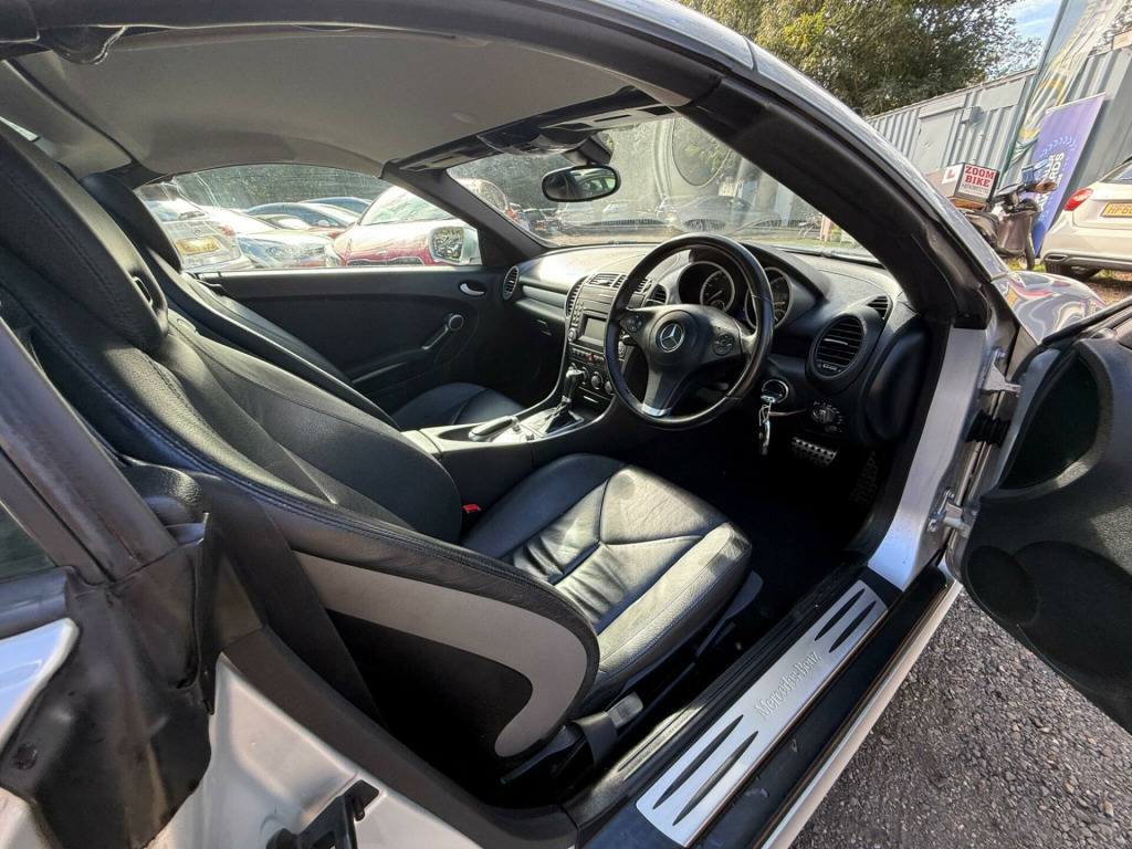 This 2009 Mercedes Benz SLK280 offers a clear vehicle history and has recently undergone its last service on 30th May 2024 at 90,557 miles, with a partial service history also provided. This SLK280 is equipped with a 3.0L petrol engine and comes with a 6-month warranty for your peace of mind. A 12-month MOT will be provided on purchase, ensuring its roadworthiness. Notable features include the Parktronic System with rear parking assistance, a comprehensive Mercedes Audio 50 system with DVD TMC SatNav, radio, 6CD and DVD autochanger, and MP3 compatibility. It also boasts DAB digital radio, 17in 5 Twin Spoke Alloy Wheels with sports suspension, and luxurious black designo Nappa leather upholstery.The performance of this SLK280 is a key highlight, achieving 0-62mph in a swift 6.2 seconds, demonstrating its dynamic capability. Furthermore, its position in a low insurance group indicates that running costs are kept competitive, making it an attractive option for many drivers. These aspects, combined with its refined features and Mercedes Benz engineering, set this SLK280 apart from other vehicles in its class. v power outlet- passenger compartment, 16in 5spoke alloy wheels, 9 speakers, auto climate control, bluetooth system, centre console storage tray, driver & front passenger seat height adjustment, height & reach adjust steering column, leather steering wheel, mercedes audio 20 radio & cd & telephone keypad, multifunction steering wheel, power steering, storage tray on dashboard, wind deflector, dab digital radio, mercedes audio 50 with dvd tmc satnav radio & 6cd & dvd autochanger & mp3 compatibility, parktronic system, bi- xenon headlights with cornering light & headlight wash, 17in 5 twin spoke alloy wheels with sports suspension, transparent wind deflector, leather- black, leather- designo nappa- black
