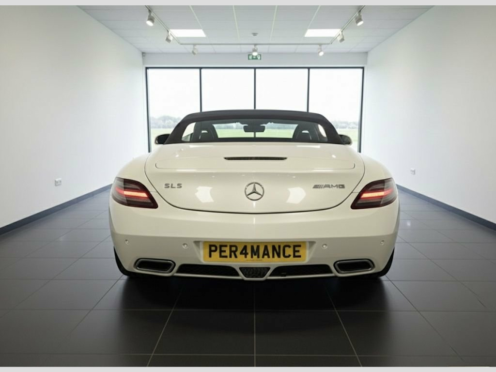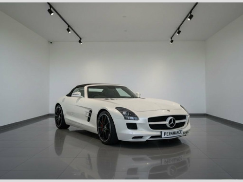 COMING JANUARY 2026!!! PER4MANCE CARS ARE DELIGHTED TO OFFER THIS IMPECCABLY MAINTAINED 2013 MERCEDES-BENZ SLS 6.2 63 V8 ROADSTER, FINISHED IN DESIGNO MYSTIC WHITE WITH DESIGNO BLACK LEATHER, SITTING ON THE OPTION 20" FORGED AMG 10-SPOKE ALLOY WHEELS. THIS SLS ROADSTER IS A RARE BLEND OF TIMELESS DESIGN, EXCEPTIONAL ENGINEERING, AND IMPECCABLE CARE. THE LEGENDARY 6.2L AMG V8 DELIVERS AN UNFORGETTABLE SOUNDTRACK, WHILE THE ROADSTER FORMAT OFFERS A PURE, OPEN-AIR DRIVING EXPERIENCE. THE DESIGNO MYSTIC WHITE METALLIC PAINTWORK PRESENTS BEAUTIFULLY, AND THE DESIGNO BLACK LEATHER INTERIOR ADDS A LUXURIOUS, DRIVER-FOCUSED FEEL. THE BANG & OLUFSEN AUDIO SYSTEM ENHANCES THE CABIN WITH PREMIUM SOUND QUALITY. HAVING BEEN DRY-STORED IN A PROFESSIONAL AIR CHAMBER, THIS EXAMPLE REMAINS IN OUTSTANDING CONDITION THROUGHOUT. A FULL MERCEDES-BENZ SERVICE HISTORY FURTHER UNDERSCORES ITS CARE AND COLLECTOR APPEAL. DUE TO ARRIVE JANUARY 2026, TO REGISTER YOUR INTEREST CONTACT OUR EXPERIENCED SALES TEAM TODAY ON 0333 988 7777 OR EMAIL [email protected] 19in/20in Alloy Wheels - AMG 7 Spoke Des, 4 GB Music Register and an Integrated CD, 7-inch Colour Display, ABS - Anti-Lock Braking System, AIRSCARF - Neck Level Heating System, AMG Drive Unit with AMG E-Select Lever, AMG Instrument Cluster with AMG Menu inc, AMG Speed Sensitive Sports Steering with, AMG Sports Exhaust System - Integrated T, AMG Sports Suspension with Aluminium Dou, AMG Trim with 6.3 AMG Lettering - Painte, AMG performance multifunction sports ste, ASR - Acceleration Skid Control, Adaptive Accelerator Pedal, Adaptive Brake Lamps, Air Conditioning, Airbags - Dual Stage - Driver, Airbags - Dual Stage - Front Passenger, Airbags - Head and Sidebags - Driver and, Airbags - Head/Th