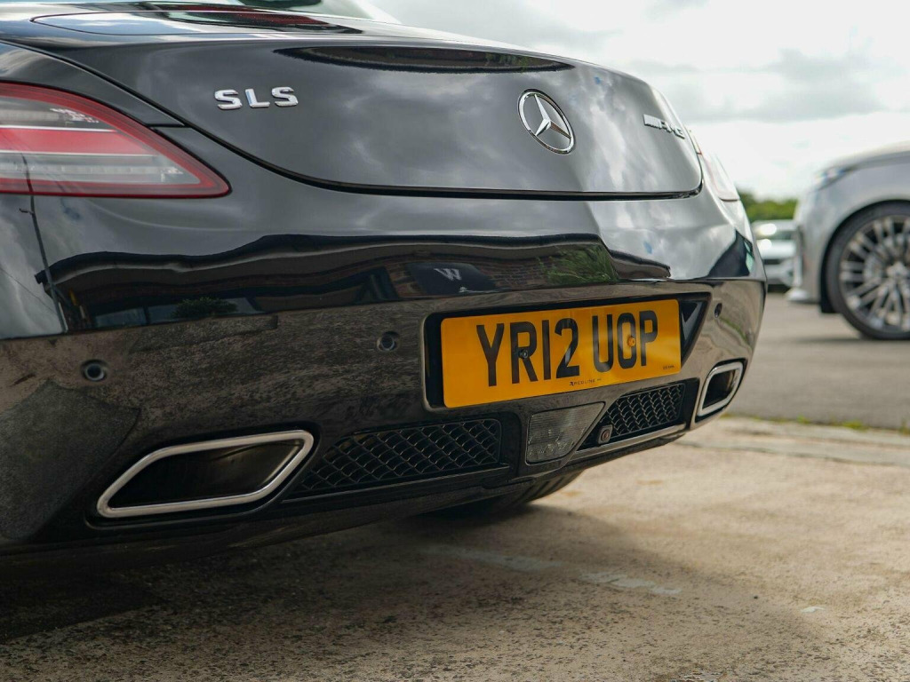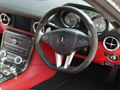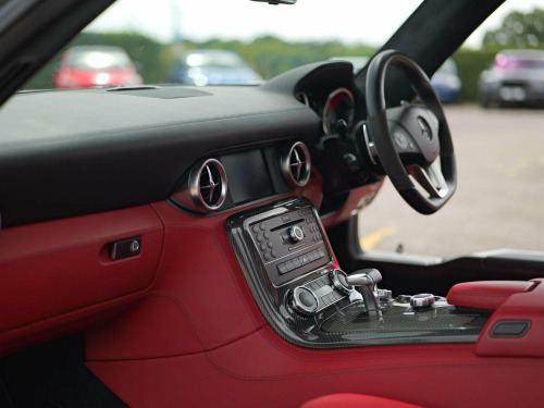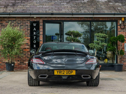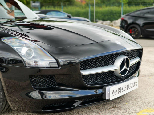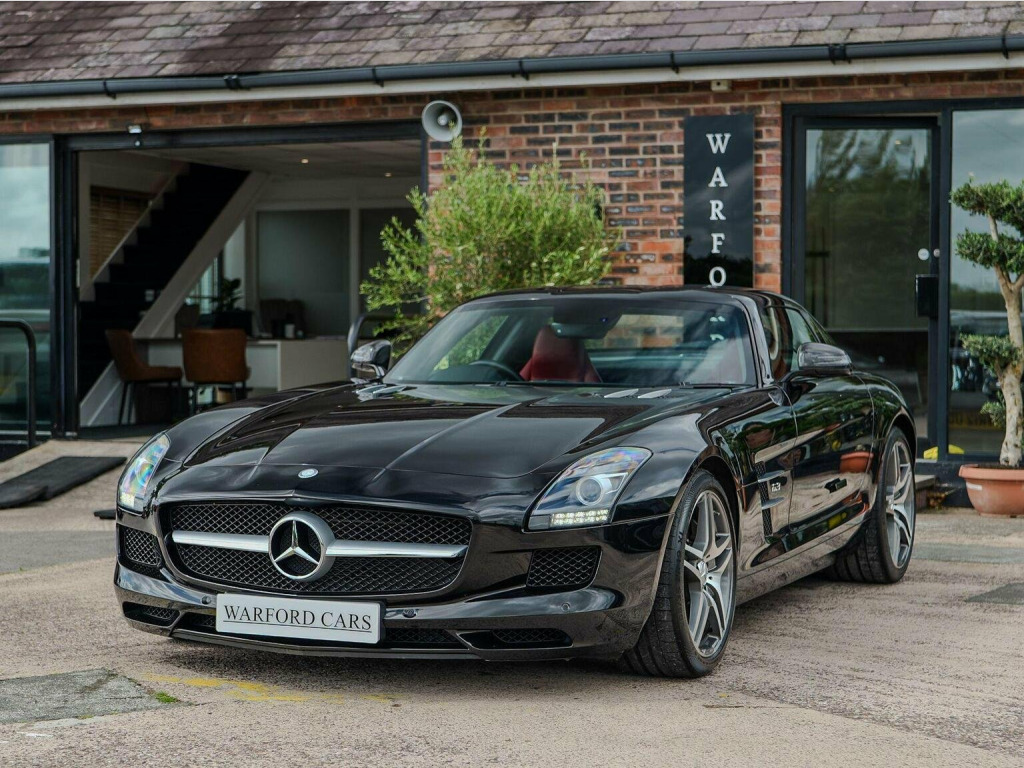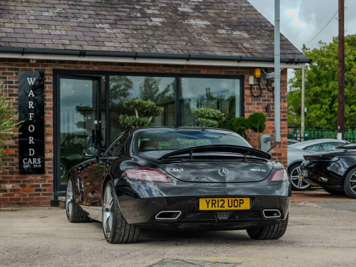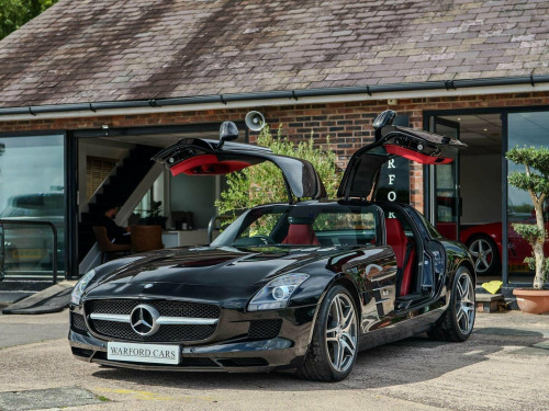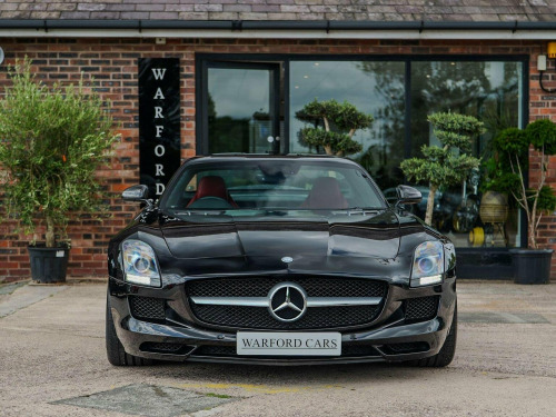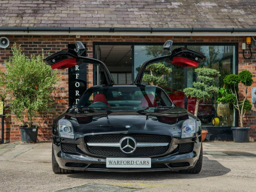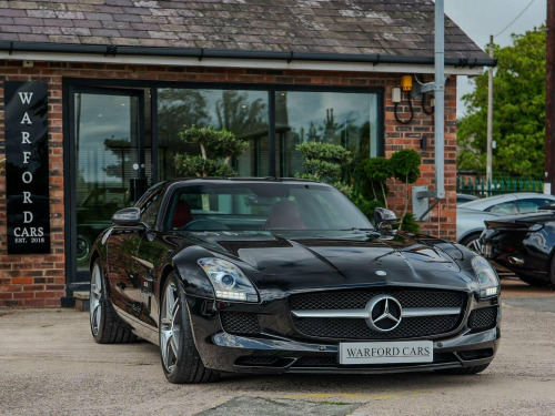 Warford Cars are proud to present this beautiful Mercedes-Benz SLS AMG V8 in Obsidian Black with Two Tone Classic Red / Black Leather Interior. With low mileage from new and great maintenance record from Mercedes Main Dealers, this car is a wonderful example of the circa 250 Coupe SLS cars that came to the UK market from when production began in January 2010. The SLS AMG was designed by Mark Fetherston to be a modern interpretation of the iconic 300SL Gullwing from the mid to late 1950s. Options on this car from new include Bang & Olufsen BeoSound, AMG Carbon Fibre Interior Package, Carbon Fibre Wing Mirrors, AMG Steering Wheel, Reversing Camera, AMG 5 Twin Spoke Wheels, Designo Two-Tone Leather, Garage Door Opener and Telephone Preparation. The car comes with all services carried out at Mercedes Main Dealers having been done 15/04/2013 at 1770 miles, 30/03/2016 at 7612 miles, 23/03/2017 at 8303 miles, 17/04/2018 at 8636 miles, 25/04/2019 at 8738 miles, 14/09/2021 at 8802 miles, 20/09/2023 at 9176 miles, 27/09/2024 at 9294 miles and 15/09/2025 at 9625 miles which also included Spark Plugs, Full Wheel Alignment and Health Check with accompanied invoices. The car comes complete with full Mercedes book pack and manuals as well as original SLS brochure and separate options price brochure with 2 keys present from new. Viewings Strictly by Appointment Only. Competitive Finance Options Available. Extended Warranty Available. Professional GTechniq Accredited Detailing Available. Call directly to arrange a viewing on 07537 165874