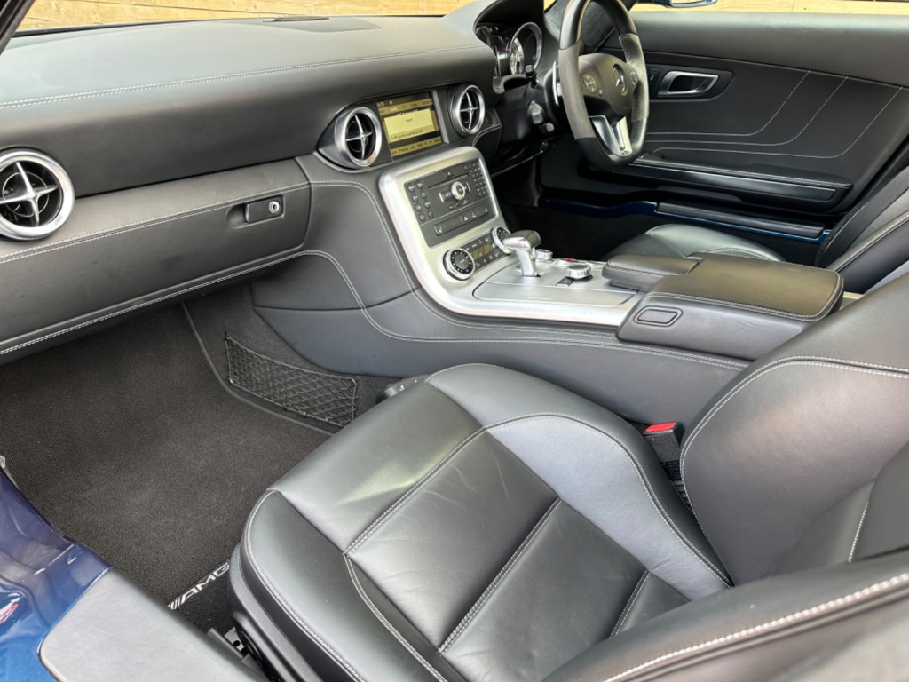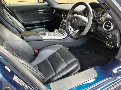 This Mercedes-Benz 2012 SLS AMG is a stunningly presented, low-mileage example of the brands glamorous grand tourer. Featuring a 6.3-litre naturally-aspirated V8 producing 563bhp and 479lb-ft of torque, its performance is marshalled by a seven-speed AMG Speedshift dual-clutch automatic gearbox. The odometer reads 16982 miles from new. , Developed with the assistance of ex-McLaren-Mercedes and Red Bull F1 driver David Coulthard, the SLS AMG was the first car to be designed and built entirely in-house by AMG. Its gullwing doors hark back to the 300 SL of the 1950s, and are the standout design feature of this handsome Mercedes. , Finished in elegant Daytona Blue metallic, the SLS presents in excellent original condition. The paintwork demonstrates a deep and lustrous shine, with taut shut lines and no unsightly dents or marks to speak of. Similarly, the badging, brightwork and light lenses are free of imperfections, reflecting the considerate use and low mileage. Fitted with 19-inch 10-spoke alloy wheels, these are in excellent overall condition. This flagship Mercedes-Benz has enjoyed timely servicing throughout its life 11 Service Stamps from Mercedes the most recent service was undertaken in April 2023 at a Mercedes-Benz main dealer. This entailed a B service, with previous B and A services carried out in September 2021, May 2020 and May 2019 and February 2019 respectively. A recent new MOT, this like every MOT the car has faced to date, resulted in a clean pass with zero advisories. The SLS is fitted with matching Continental Sport Contact tyres in the staggered fitment of 265/35/ZR19 front and 295/30/ZR20 rear, with ample tread remainingCombining a mighty naturally aspirated V8 soundtrack with a handsome retro aesthetic and unique doors, this Mercedes-Benz SLS AMG stands out as a fabulously entertaining grand touring car. It would be a welcome addition to a luxury car collection, or a capable and entertaining partner for a journey across the continent.