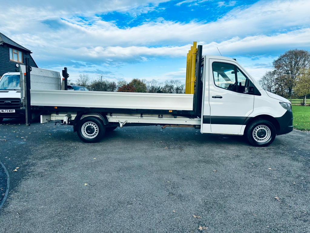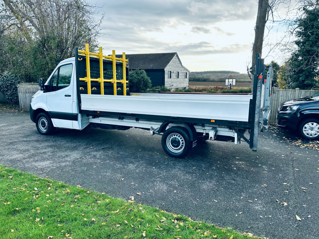 2022/72 REG Mercedes-Benz Sprinter 2.0 315 CDI Progressive Dropside with a sturdy diesel engine, automatic transmission, and rear-wheel drive. This commercial vehicle has a gross weight of 3500kg, 1 OWNER, FULL SERVICE HISTORY,AIR CONDITIONING,ELECTRIC WINDOWS,DAB RADIO,BLUETOOTH CONNECTION,APPLE CAR PLAY. 4 METRE DROPSIDE, ALLY BODY WITH A TAIL LIFT.SUPPLIED WITH 12 MONTHS MOT,6 MONTHS PLATINUM WARRANTY, ALL MAJOR DEBIT CARDS ACCEPTED,BANK TRANSFER,FINANCE AVAILABLE SUBJECT TO STATUS. r conditioning, bluetooth connection, usb/ipod interface, drivers arm rest, dual passenger seat, adjustable steering column, cruise control, multi-function steering wheel, power steering, traction control, trip computer, abs, air bag, service indicator, alarm, central locking, immobiliser, electric windows, digital radio, media storage, radio, steering wheel audio controls, front head restraints, height adjustable drivers seat, lumbar support, retractable headrests, auto lighting, solid paint, steel wheels, 3 seat cab, 4 metre, air conditioning, apple car play, euro 6, ulez compliant