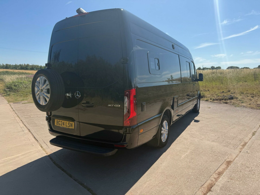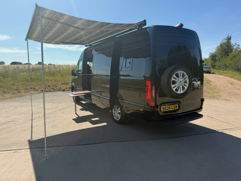 We are proud to offer this 4 berth/4 seater camper Mercedes CDI 317 Hi Top LWB rare Automatic Campervan, VAT Qualifying, Freshly converted and never been used or slept in, Only 4,300 miles, with balance of manufacturers warranty, 4 berth with electrically lowering Double Bed from roof, 1 owner, 2x Solar panels, Leisure battery, Apple/Android car play, Large screen Satellite Navigation and Media system, 360 degrees Camera, Front and Rear parking sensors, Wind Out awning with Exterior LED Lighting, 2 Burner gas hob, Sink, Heater control panel with remote, Stand alone remote controlled roof air conditioning- Works without engine running, High quality cross stitched leather interior with matching leather headlining, Rotating front seats, Full sized shower, Hot/cold water, Thetford cassette toilet, Roof and floor LED lighting, and Illuminated cupboards, Electric side step, Under seat storage, Interior extendable table which also doubles up as an outside table, Blackout blinds with Fly screens, Opening sky lights, Easy clean flooring, Spare wheel mounted on outside, Rear seating area with removable table. Water storage container, Please see 100 photos plus a detailed walk around video on my website www.sportsansdprestigeoflichfield.co.uk, part exchange welcome, Finance available.. 16in Steel Wheels, 270 Degree Double-Wing Rear-End Doors - Opening to Side Wall, ABS - Anti-Lock Braking System, ATTENTION Assist, Active Brake ASSIST, Adaptive Brake Lights, Adaptive ESP - Electronic Stability Programme, Additional USB-C, Airbag - Driver, Alternator 14V - 180A, Anti-Theft Protection Package, Armrest for Drivers Seat, Breakdown Management, Bulkhead - Full-Width Partition, Comfort Driver Seat, Comfort Overhead Control Panel, Communication Module - LTE - For Digital Services, Crosswind Assist, Cruise Control, DAB Digital Radio Tuner, Doors - Sliding Side Load Door on Left Side, Double Co-Driver Seat, Double Locks, Drivers Seat, Electric Windows - Front, Entrance Handle on Right-hand Rear Corner Pillar, Fuel Filter with Water Separator, Full Wheel Covers, Grab Handle - Load Compartment Sliding Door at Partition, Heat-Insulating Glass with Filter Band on Windscreen, Heavy Duty Battery - 12V 92Ah, Hill Start Assist, Hydraulic Jack, Integrated Connected Alarm System, Interior Courtesy Light Door Operated, Jump Start Contact, Keyless Start, Lighting - Headlight Assistant, Lights for Left Hand Traffic, Longitudinal Member Reinforcement, MBUX Multimedia System with 7-inch Touch Screen, Mercedes-Benz Emergency Call System - eCall, Multifunction Steering Wheel, Outside Air Temperature Gauge, Parking Package with Reversing Camera, Power-Assisted Steering, Pre-Installation for Switch Panel, Prewiring for Parameterizable Special Module - PSM, Radiator Grille Frame in Vehicle Colour, Remote Central Locking, Seat Belt Reminder for Co-Driver Seat, Shelf Above Windscreen, Side Marker Lights, Spare Wheel, Spare Wheel Bracket Below Frame End, Steering Column - Manually Adjustable, Steering Wheel - Rake and Reach Adjustment, Storage - Hinged Lid for Stowage Compartment, Storage Compartment Underneath Cockpit, Summer Tyres, Suspension - Stabilisation Level I, TEMPMATIC Semi-Automatic Climate Control System, Terminal Strip for Electrical Connection, Third Brake Light, Tyres 235-65 R16 C, Tyres Resistance-Optimised, Tyres without Name of Make, USB-C Socket - 5V, USB-C and Bluetooth Interface - WIFI Hotspot -Apple CarPlay - Android Auto and a DAB Radio, VIN Visible from Outside, Wood Load Flooring, Air Conditioning, Awning, Awning Light, Battery Charger, Blinds, Blown Air Heating, Blown Air System, Bluetooth, Bunk Beds, Cab Air Conditioning, Cassette toilet, Cassette toilet with electric flush, 12v Power, ABS, Air Con, Alloy Wheels, Central Locking, CO2 Detectors, Colour Coded Bumpers, Double Beds, Eberspacher Heating, Electric and Gas Heating, Electric Entrance Step, Electric Heater, Electric Mirrors, Electric Water Heater, Electric Windows, Dual Fuel Hob and Grill, External 240v, Fixed Bed, Flame Failure Shut Off Valves, Flyscreen and Blinds, Free Standing Table, Freezer, Fridge, Fresh/Waste Water Tank, Gas Hob, Grill, Heated Mirrors, Heki rooflight, Hob and Grill, Hot and Cold Shower Unit, Internal Window Blinds, Large rooflight, Leather Upholstery, Leisure Battery, Mains electric, Manufacturers Warranty, Microwave, Mixer Taps, Power dock, Power Steering, Rear Seat belts, Reverse Camera, Reversing Sensors, Sat Nav, Satellite Navigation, Second Battery, Shower, Sink, Sink and Drainer, Solar Panels, Spare wheel, Swivel Chairs, Swivel Drivers Seat, Swivel Passenger Seat, Under Floor Insulation, Wardrobe, Wind Out Awning. Full dealership history
