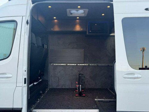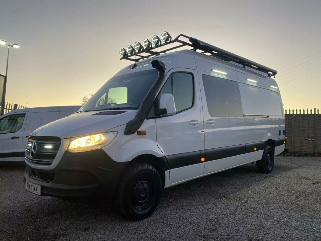Make & Model Mercedes sprinter 317 LWB 9G Tronic 170 BHP with roof extension , , PRICE £54,995, , Engine Size: 1950cc, , Registration Date: 20/04/2021, , Mileage: 110k, , Total Seats: 3, , Total Gears: 9 tripronic, , 21 plate, , New shape, , RWD, , AD Blue euro 6, , Private reg not included in vehicle sale , , Mercedes sprinter overlander conversion. , This vehicle has had no expense spared with the build list and quality from the van itself to the high spec of parts use. We have used the highest quality of electrics throughout the vehicle. x1 electric Lippert bed kit with custom mattress and covers, the vehicle has also had a summit pod fitted to two thirds of the vehicle on roof to give you 8inch more head room once in bed, fabricated mounting kit to install the bed. 12v wiring for onboard electrics. 240v wiring for chargers and hook up. x12 12v spotlights, x4 12v touch spotlights. X3 12v awning lights on the exterior x2 on rear doors, x2 under bed. rgb mood lighting. 7x 240v sockets 3x usb sockets 3x 12v sockets 2x rocker switches for bed control 4x double switches for lights, 1x single switch for lights 1x Victron solar control, 1x Victron battery monitor, 1x Victron 240v battery charger, Stirling power dc/dc charger, 240 v consumer unit 2x rear, 2x 12v disconnect switches for shutting off power to aux power and solar, 12v distribution board. X2 Exide marine 110AH Batteries. , The vehicle is highly insulated with x10 rolls dodo insulation, x5 rolls sound deadening and insulation barrier, 25mm Kingspan for flooring, board sides and roof, cover boarding with suede fabric. carpet for flooring. Eberspächer heater just serviced plus new fuel pump and bracket. And fitted Unistrut midway up sides of van. fit Unistrut on flooring in rear of van. For anchor points wherever needed. , Bespoke units and cupboard with an integrated Dometic microwave, fold down shelf. All three front seats have been made into swivel seats. The vehicle has remis blinds throughout the vehicle and has also been fitted with a dash camera hard wired in, , The outside of the vehicle is just as impressive with x5 tyres 1x new spare wheel, paint wheels gloss black. snorkel kit custom roof rack x6 spot lamps 2x reverse spot lamps x2 grill spot lamps - x1 Maxx fan x1 large solar panel x1 rear ladder form Dutch van parts, x1 rear cargo box from Dutch van parts, x1 spare wheel carrier from Dutch van part, x4 locking wheel nuts for spare wheel. x1 rear step x1 set of solar mounting, feet + glands x1 240v hook up sockets x2 240v outlets x2 awning lights on outside. x1 awning and fabricated mounting kit. , Heavy duty front and rear springs fitted all round with stiffer rear shocks helps keep the van driving very well and the lift provided from the new springs adds to the stance and capability. , The vehicle as also just had a full service with engine oil filter, air filter, fuel filter, brake fluid change and gear box oil and filter change and front disc and pads and rear discs and pads Along with a New genuine DPF And exhaust . , , This vehicle is in immaculate condition throughout will not be disappointed, , Excellent driver, , Great pulling power through all gears, , Lovely smooth drive, , Ready for work or pleasure, , Welcome to view, , HPI clear, , Ready for the new owner, , Deposit will secure , , Has just been fully valeted and in stunning condition. , Any questions please call Monday to Friday 8am to 5.30pm on 01925 414900,, , out of office hours calls maybe taken or leave a message on 07859713119