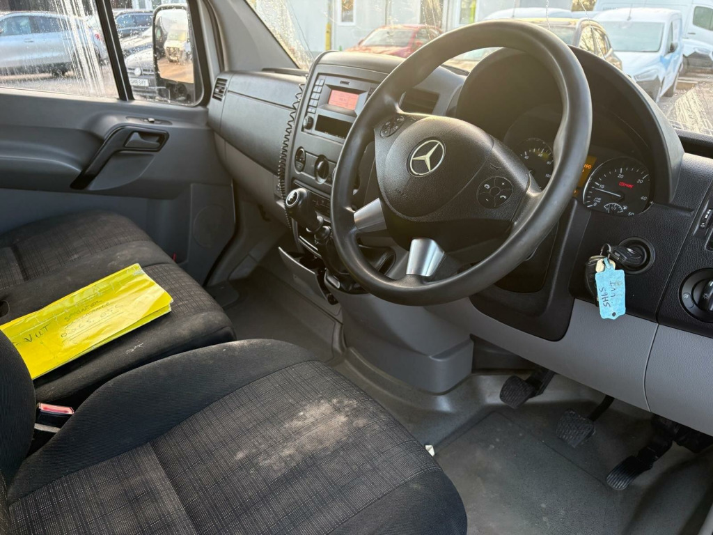 Decals to be removed. Commercial and Personal Finance available. Nationwide delivery available. Viewing by appointment only please. This 2015 Mercedes Benz Sprinter 313 CDi offers peace of mind with a clear vehicle history check and a 12 month MOT provided on purchase. This RWD L3 H3 5 door model is powered by a reliable 2.1 litre diesel engine and comes with a 3 month warranty for added security. Excellent Mercedes Dealer service history via invoices for work, the provenance of this vehicle is well documented.The Sprinter 313 CDi is a capable and practical choice, featuring a spacious interior designed for work or transport. Its robust build and the renowned Mercedes Benz engineering ensure dependable performance. The combination of its generous dimensions and the efficient 2.1L diesel engine makes it a strong contender in its class, offering a solid foundation for your business needs. rbag driver, anti-lock brakes, audio 10 radio and mp3 player, bluetooth connectivity for phone and audio streaming, central locking with remote key, cloth seats, daytime running lights, dual front passenger seat, electrically operated front windows, full bulkhead, immobiliser, multifunctional steering wheel, power steering, electric, roof-high roof, sliding side load door on left side, spare wheel, speedtronic variable speed limiter and cruise control, steel wheels-16in, trip computer, twin rear doors