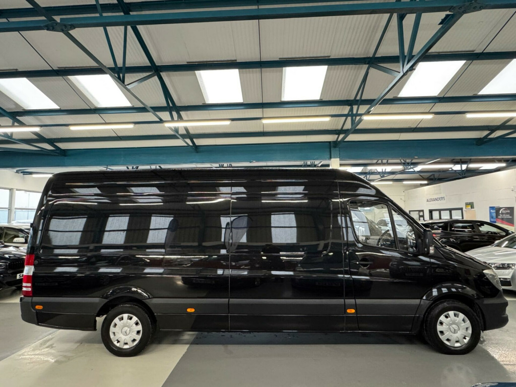 **Top Spec immaculate Sprinter - Full Mercedes Service History - One Owner from new**Offering a rare opportunity to acquire a well maintained vehicle. One Owner from new and Full Mercedes Service history Sprinter - Owned by an interior designer in Kensington and used by just one driver, maintained only by Mercedes! Comes with every Mot, Mercedes Bill/Invoice from new. Not a mark to see, Always stored indoors and kept immaculate. Not to be confused with rusty, non maintained work vans advertised.Top Spec finished in Saphhire Black with Air conditioning, Buy the very best -Unmatchable reliability combined with such accurate upkeep this Sprinter is the one. Awaiting a Camper conversion, Pending a dream come true! Powered by a robust 2.1 litre diesel engine, providing reliable performance for a variety of tasks. Its L3 H3 designation indicates a long wheelbase and high roof, maximising its load carrying potential.The Sprinter is renowned for its practicality and durability, and this particular example benefits from its single ownership history, suggesting careful use and attention. The 2.1 litre diesel engine offers an efficient and capable powertrain, making it a sensible choice for businesses and individuals alike. This van represents a solid investment, combining the quality associated with the Mercedes Benz brand with the practical benefits of its well considered design. of-high roof