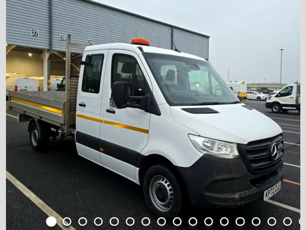 Opportunity to buy a very rare double cab Mercedes Sprinter dropside. 1 Owner, Full Service History, MOT until 08/01/2027, 3 Month Warranty, 7 Seats, Alloy Body, Roof Beacon, Tow Bar, Electric Windows, Bluetooth, DAB Radio, Apple Car Play, Cruise Control, Spare Key & Remote Central Locking.