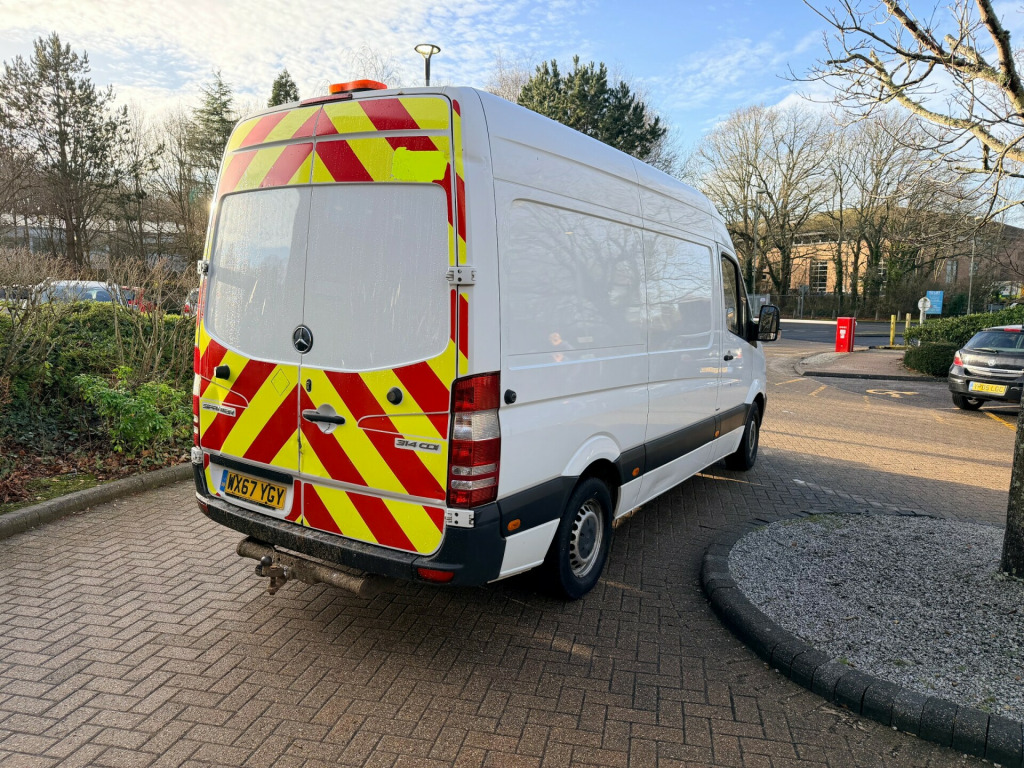 FULL SERVICE HISTORY, 2 KEYS, ONE OWNER FROM NEW, MOT UNTIL JANUARY 2027 NO ADVISOIRES. SPEC INCLUDING TOW BAR, ON BROAD POWER READ DESCRIPTION.Presenting this 2017 Mercedes-Benz Sprinter 314 CDi L2 Panel Van, powered by the proven 2.1-litre diesel engine producing 140 bhp, paired with a manual rear-wheel-drive gearbox a strong and dependable setup ideal for demanding commercial use.This is a one-owner van from new, an increasingly rare find, and a solid, honest example that's ready to work.jQuery3710539225975670713_1767812852623 Key Features & SpecONE OWNER FROM NEW2.1L 314 CDi Diesel - 140 bhpManual GearboxRear-Wheel Drive (RWD)L2 Wheelbase Panel Van3500kg Gross Vehicle Weight3 Seats (Day Cab)5-Door layout for easy accessWhite professional finishElectrical UpgradeProfessionally installed a Sterling Power digital quasi sine-wave inverterProvides stable and reliable AC power on siteIdeal for power tools, charging equipment, or camper/day-van conversion useA valuable upgrade rarely found on standard vansPerfect for trades & mobile workshop setupsLoad & PracticalitySpacious L2 load areaWide rear barn doorsSide-loading doorStrong, practical loading floorIdeal for tools, materials, courier work or trade useCondition SummaryDrives wellThe engine and gearbox perform as they shouldInterior is clean and functionalExterior presents well with age-related marks consistent with mileageGenuine one-owner commercial vehicleIdeal ForCourier & multi-drop delivery routesTrades & constructionTools, equipment & materials transportBusiness or fleet useExport buyers welcomeContactMotor Buying GroupCall or message to arrange a viewing or walk-around video.Nationwide delivery available.Part-exchange welcome.BY APPOINTMENT ONLY! FINANCE AVAILABLE! v socket, assyst service computer, load-securing rings in loud-compartment floor, abs with brake assist (bas), acceleration skid control (asr), adaptive esp (electronic stability program), central locking with remote control, crosswind assist, drivers airbag, electronic brake force distribution (ebd), head restraints - front, immobiliser, rack-and-pinion power steering, speedtronic variable speed limiter, three-point seat belts on all seats with belt tensioners and belt force limiters for drivers seat, tyre pressure monitoring system, audio 10 radio with telephone keypad, aux-in socket, sd memory card slot, bluetooth interface, lockable glove compartment, multi-adjustable drivers seat, multifunction steering wheel, non-slip rubber floor covering, power windows for driver and co-driver, precisely controllable heating and ventilation system with four-stage fan and two additional fresh-air-vents, speedtronic variable cruise control, usb, independent front suspension, sliding side load door on left side
