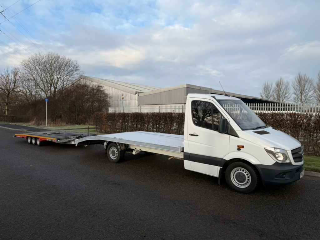 We Are Delighted To Offer This Immaculate Mercedes-Benz Sprinter Flat Bed Transporter With The Bonus Of An Optional 3500kg Brian James Trailer. Recent Full Service Including Gearbox Service Carried Out. For Further Information Or To Arrange A Viewing Please Contact Andrew Or Ross You Will Not Be Disappointed.. 12V Socket, ABS with Brake Assist (BAS), ASSYST Service Computer, Acceleration Skid Control (ASR), Adaptive ESP (Electronic Stability Program), Audio 10 Radio with Telephone Keypad, Aux-In Socket, SD Memory Card Slot, Bluetooth Interface, Central Locking with Remote Control, Crosswind Assist, Drivers Airbag, Dual Front Passenger Seat, Electronic Brake Force Distribution (EBD), Immobiliser, Independent Front Suspension, Interior Rear View Mirror, Lockable Glove Compartment, Multi-Adjustable Drivers Seat, Multifunction Steering Wheel, Non-Slip Rubber Floor Covering, Power Windows for Driver and Co-driver, Precisely Controllable Heating and Ventilation System with Four-Stage Fan and Two Additional Fresh-Air-Vents, Rack-and-Pinion Power Steering, Speedtronic Variable Cruise Control, Speedtronic Variable Speed Limiter, Three-point Seat Belts on all Seats with Belt Tensioners and Belt Force Limiters for Drivers Seat, Tyre Pressure Monitoring System, USB.