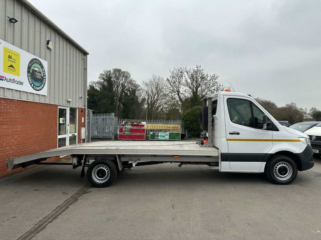 This is our own Mercedes-Benz Sprinter Car Transporter, professionally fitted with a beaver tail bed by Sapcote Commercial Bodies. Including a 13,500lb 12v electric winch and ramps stowed away in the body - Comes serviced and MOT, supplied with Brand new ratchet straps ready to go to work today!