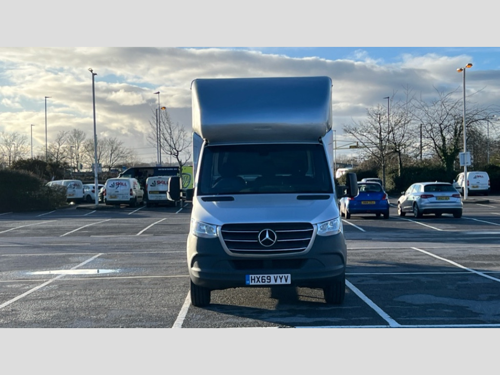 Mercedes-Benz Sprinter 3.5t Chassis Cab ASSYST - Flexible servicing system, Comfort overhead control panel, Communication module (LTE) for digital services, Cruise control, Digital clock, Outside temperature gauge, PAS, Rev counter, Speedometer, Terminal strip for electrical connection, Trip computer, 2 speakers, Digital radio (DAB), USB connection, Adaptive brake lights, Delete parking lamp, Electric front windows, Headlight assistant, Indicators in front door mirrors, Interior rear view mirror, Lights for left hand traffic, Longitudinal member reinforcement, 2 sunvisors plus shaded windscreen centre, A4 oddments tray on centre of dash, Cab headlining, Compartment under fold-up passenger seat, Front door pockets with bottle holder, Height and reach adjustable steering wheel, Hinged cover for centre storage compartment, Interior shelf above windscreen, Locking glovebox, Map reading lamp, Multi function steering wheel, Pre-installation for switch panel, Shelves to left and right on instrument panel, Storage compartment under cockpit, Anti-theft protection pack - Sprinter, 3 point inertia reel belt on all seats, Attention assist, Breakdown management, Crosswind assist, Deactivation of bulb failure indicator, Driver's airbag, Jack, Mercedes-Benz emergency call system, Seat belt warning for driver's seat, Double locking, Immobiliser, Remote central locking, VIN visible from outside, ABS, Adaptive ESP, Brake assist, EBD, Fuel filter with water separator, Hill start assist, Jump start contact, Particulate filter (DPF), Uprated front axle, Resistance-optimised tyres, Spare wheel bracket below frame end, Summer tyres