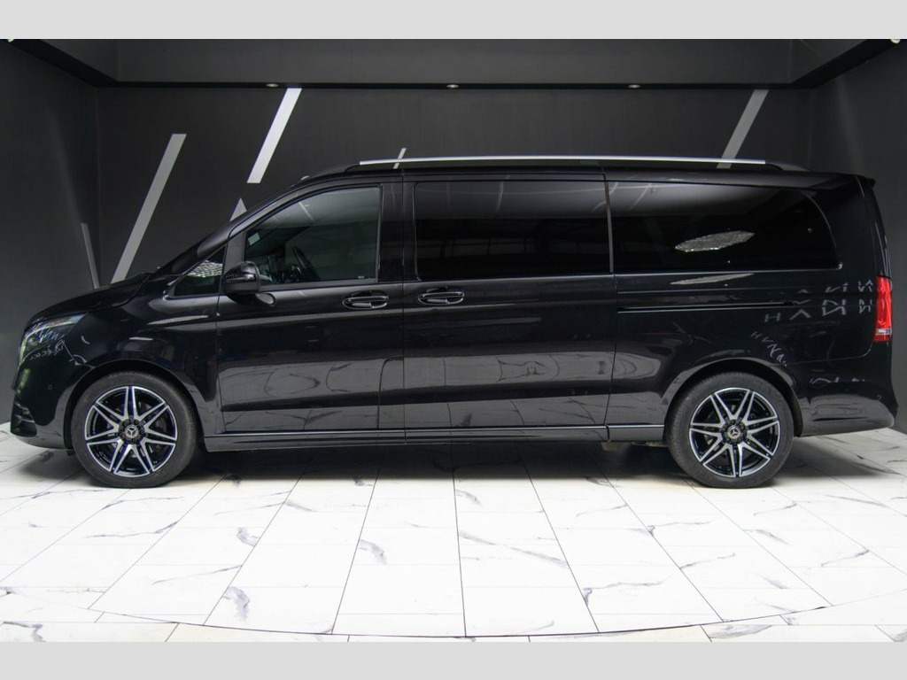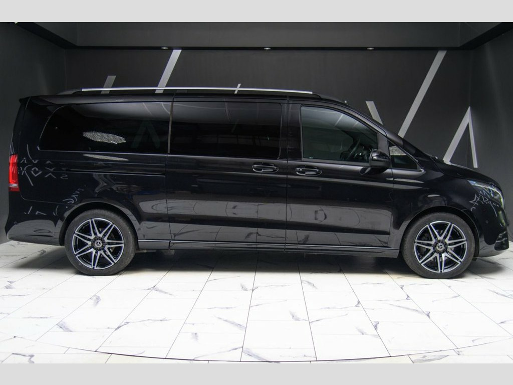 This Mercedes-Benz V-Class 2.0 V220d AMG Line XLWB presents a perfect blend of executive luxury, versatile space and refined design, finished in timeless Obsidian Black and enhanced by the striking AMG Line styling package. Its commanding road presence is elevated by 19in AMG 7-twin-spoke alloy wheels, a diamond-pattern grille with chrome pins and sculpted AMG front and rear aprons, complemented by anodised roof rails and privacy-tinted rear glass. Inside, the cabin delivers first-class comfort with Artico leather upper dashboard with contrast stitching, ambient lighting, heated front seats and premium THERMOTRONIC two-zone climate control extending into the rear. The XL wheelbase offers exceptional interior space with extended seat rails, electric sliding doors on both sides, additional cup holders and luxury stowage solutions, all finished with carbon-look trims and illuminated Mercedes-Benz door sills. Technology highlights include the intuitive 10.25-inch MBUX multimedia system, reversing camera with Active Parking Assist, FrontBass audio, cruise control with SPEEDTRONIC, and a suite of safety systems such as ATTENTION Assist, Active Brake Assist and Sidewind Assist. Practicality is maximised with the EASY-PACK powered split tailgate, towing package, multiple USB ports and a heated washer system. This V-Class offers an exceptional combination of sophistication, comfort and everyday usability—crafted for families, professionals and chauffeurs seeking premium space a Obsidian Black, 12V Socket in Boot-Load Compartment and , 19in Alloy Wheels - AMG 7-Twin-Spoke Des, ABS - Anti-Lock Braking System, AMG Bodystyling - Front Apron - Rear Apr, AMG Bodystyling - Side Skirts, ATTENTION Assist, Active Brake Assist, Active Parking Assist with Reversing Cam, Adaptive Brake Lights, Adaptive Brake System with HOLD Function, Additional Cup Holders in Armrests of Se, Adjustable Head Restraints for Driver an, Agility Control - Comfort Suspension, Airbag - Driver, Airbag - Front Passenger, Airbags - Sidebag for Driver and Front P, Airbags - Windowbags for Driver and Fron, Ambient Lighting - Three Different Colou, Anodised Roof Rails, Artico Leather Upper Dashboard with C