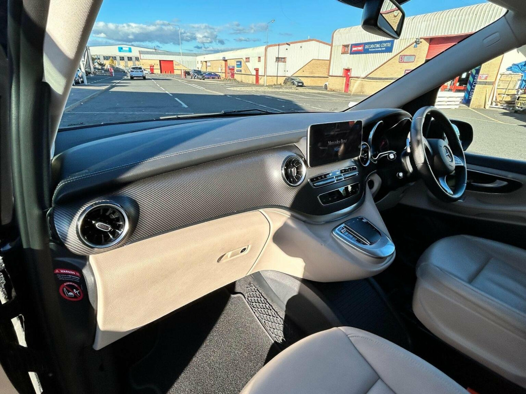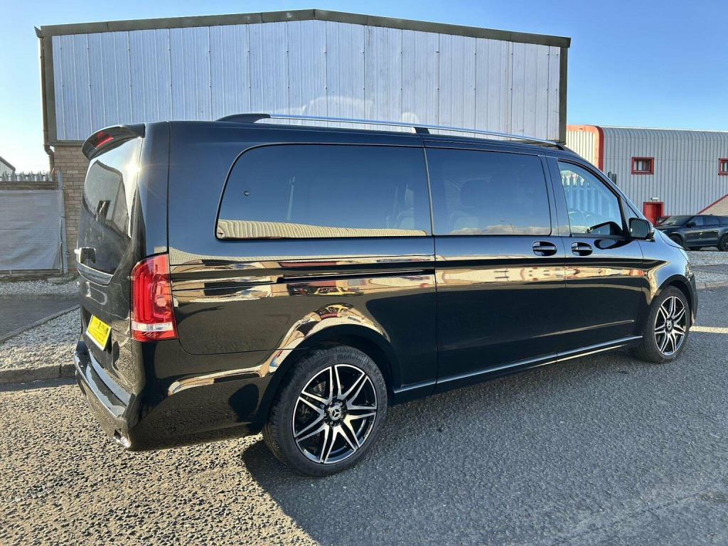 Arriving into stock soon. VAT QUALIFYING. This 2024 Mercedes Benz V Class V300d AMG Line is presented with a clear vehicle history check, offering peace of mind for its next owner. This impressive seven seater boasts a powerful yet efficient 2.0 litre diesel engine, meeting Euro 6 emissions standards. The AMG Line trim enhances its sophisticated appeal, while notable features include the Lane Tracking Package with Blind Spot Assistance, a comprehensive 7 Seat Package, and an iPod, iPhone, and Bluetooth interface for seamless connectivity and hands-free calls. Enjoy added comfort with heated front seats and the convenience of automated headlamp assist. The V Class V300d AMG Line provides a refined driving experience, with a brisk 0-62mph acceleration time of just 7.9 seconds. This performance, combined with its generous boot space, sets it apart from other vehicles in its class, offering both practicality and dynamic capability. The inclusion of advanced safety and convenience features further elevates its appeal, making it an excellent choice for families or those requiring versatile and comfortable transport.