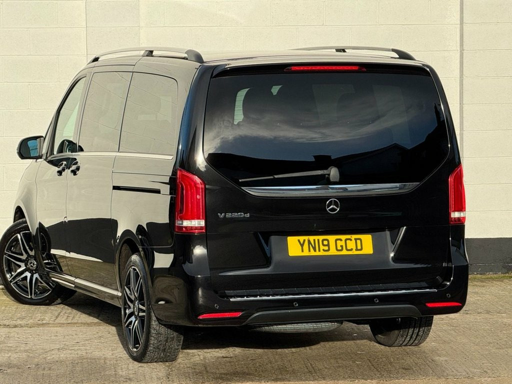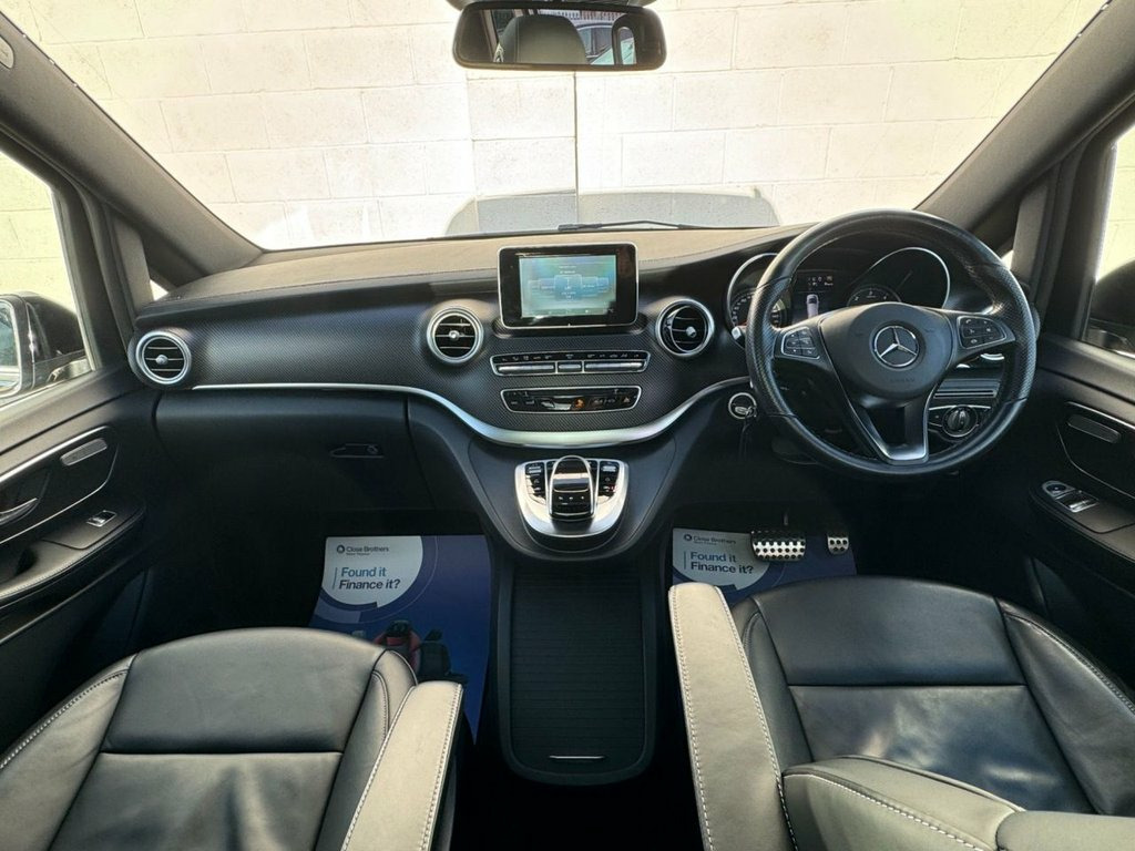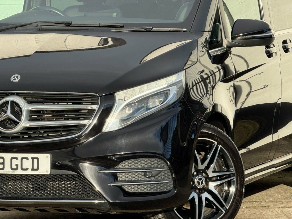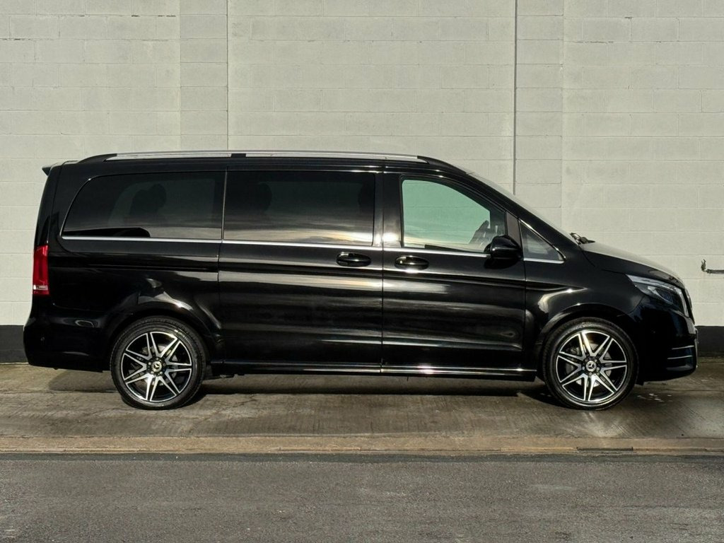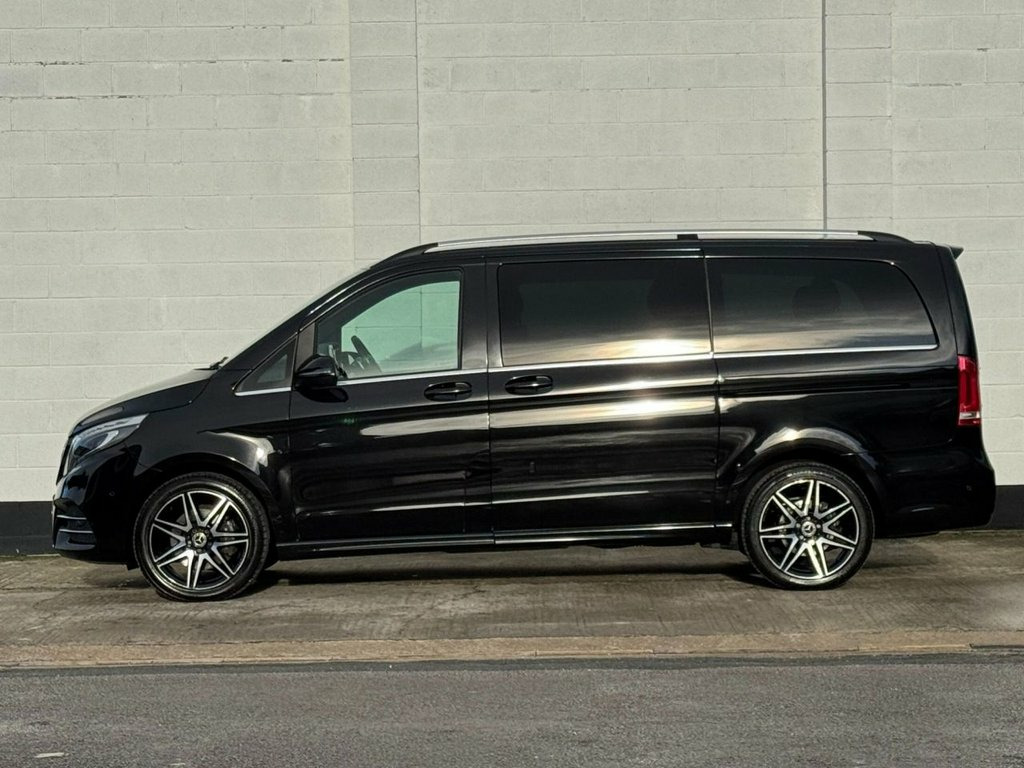 2019 Mercedes-Benz V-Class 2.2 V220d AMG Line G-Tronic+ (7 Seat LWB) Finished in Obsidian Black Metallic with full Mercedes-Benz service history. A superb long-wheelbase V-Class in AMG Line specification, offering luxury, space and refinement. Ideal as an executive shuttle, family MPV or long-distance tourer. Presented in excellent condition throughout. Key Features & Highlights • 2.2-litre V220d diesel engine • G-Tronic+ automatic transmission • Long Wheelbase (LWB) configuration • AMG Line exterior styling • 7-seat layout • Obsidian Black Metallic paint • Full Mercedes-Benz main dealer service history Specification • 19-inch AMG alloy wheels • AMG bodystyling package • LED Intelligent Light System • Privacy glass (rear) • Electric sliding doors (left & right) • Leather upholstery • Heated front seats • Electric front seats with memory • Multifunction steering wheel • Ambient interior lighting • COMAND Online navigation • Bluetooth connectivity • USB and media interfaces • Dual-zone climate control • Rear climate control • Cruise control with speed limiter • Parking sensors front and rear • 360-degree surround camera • Electric tailgate Performance & Efficiency • Power: approx. 161 bhp • Transmission: 7G-Tronic+ automatic • Fuel type: Diesel • Drive: Rear-wheel drive Service Histor Nappa Leather - Black, Obsidian Black, 12V Socket in Boot-Load Compartment and , 19in Alloy Wheels - AMG 7-Twin-Spoke Des, ABS - Anti-Lock Braking System, AMG Bodystyling, AMG Bodystyling - Side Skirts, ATTENTION Assist, Active Parking Assist with Reversing Cam, Adaptive Brake Lights, Adaptive Brake System with HOLD Function, Adjustable Head Restraints for Driver an, Agility Control - Comfort Suspension, Agility Select with a Choice of Driving , Airbag - Driver, Airbag - Front Passenger, Airbags - Sidebag for Driver and Front P, Airbags - Windowbags for Driver and Fron, Ambient Lighting - Three Different Colou, Anodised Roof Rails, Anti-Theft Protection Package, Artico Leather Upper Dashboar