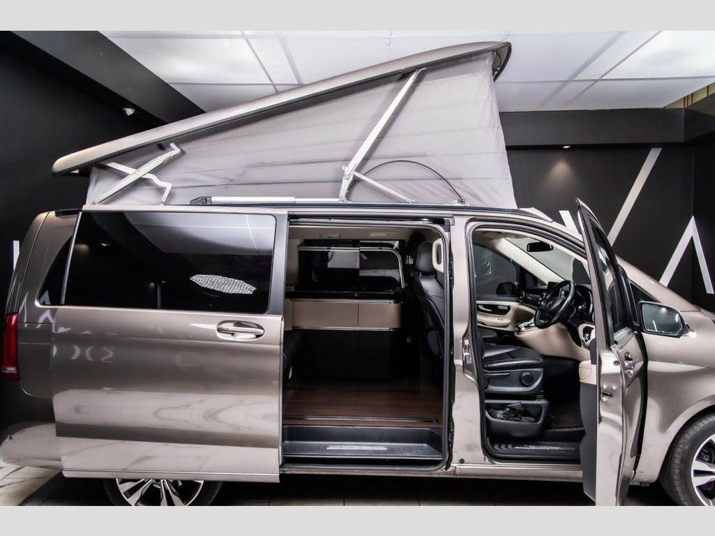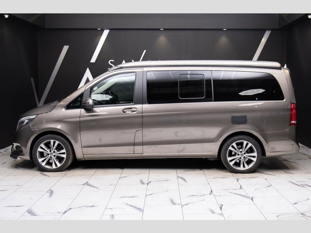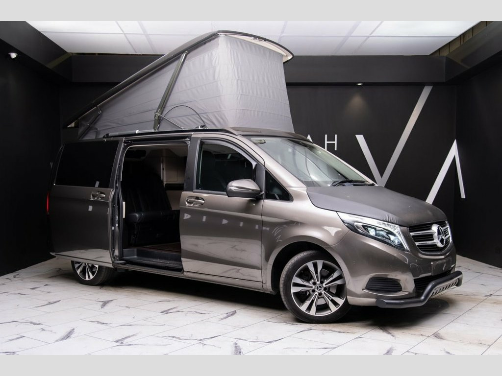 MERCEDES-BENZ V-CLASS 2.2 V220d Sport Marco Polo Camper 4dr Diesel G-Tronic+ Euro 6 (s/s) (163 ps) arrives in an elegant Indium Grey finish, seamlessly blending style and utility with 18" 5-twin spoke Tremolite Grey alloy wheels and LED Intelligent Light System headlamps accentuating its commanding presence. Designed for true explorers, its EASY-UP pop-up roof reveals a two-seater bed, complemented by a two-seater luxury couch with bed extension, a fully integrated kitchenette, yacht wood flooring, external power and water connections, and even a fold-out camping table with two chairs. Inside, black Lugano leather seating, ambient lighting with three colour modes, and high-gloss black piano lacquer trim offer a refined atmosphere, further enhanced by THERMATIC 3-zone climate control and a high-resolution 7" multimedia display with Garmin navigation. Convenience meets innovation with electric sliding doors, EASY-PACK powered tailgate, heated front seats, swivelling comfort seats, and a luxury centre console with USB and 230V access. Additional touches such as the mattress topper, auxiliary battery with charger, and rear ventilation ensure long trips remain as comfortable as they are practical. Safety and performance are paramount, with features like ATTENTION Assist, Collision Prevention Assist, Sidewind Assist, and Agility Control suspension, all working alongside a dynamic 163 ps diesel engine and smooth G-Tronic+ transmission for a drive that's confident and compo Towing Package, Mattress Topper, Lugano Leather - Black, Indium Grey, 12V 80Ah Auxiliary Battery with Charger, 12V Socket in Boot-Load Compartment and , 18in Alloy Wheels - 5 Twin Spoke Design , ABS - Anti-Lock Braking System, ATTENTION Assist, Active Parking Assist with Reversing Cam, Adaptive Brake Lights, Adaptive Brake System with HOLD Function, Additional Reading Lamps Above Rear Wind, Adjustable Head Restraints for Driver an, Agility Control - Comfort Suspension, Agility Select with a Choice of Driving , Airbag - Driver, Airbag - Front Passenger, Airbags - Sidebag for Driver and Front P, Airbags - Windowbags for Driver and Fron, Ambient Lighting - Three Different Colou, Anti-Theft Prot