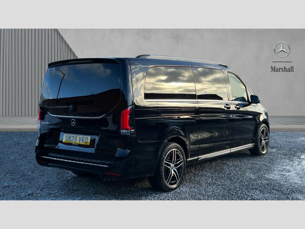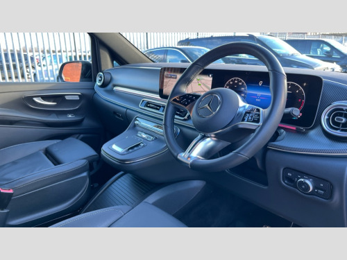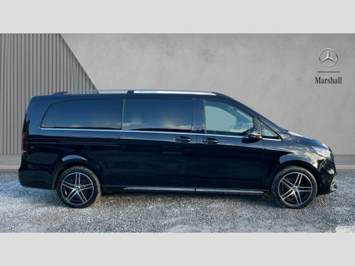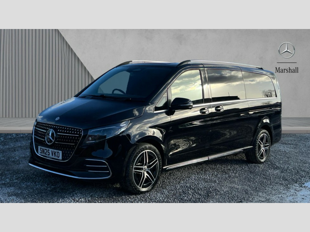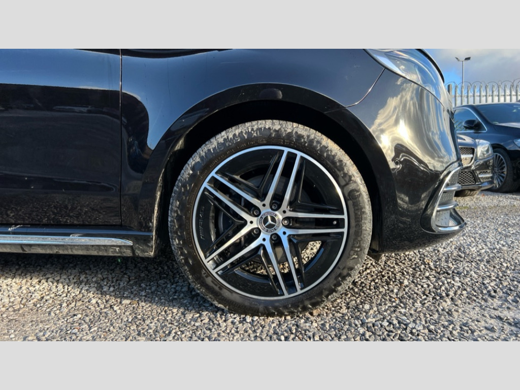 Mercedes-Benz V Class V220 d Premium AMG Line 5dr 9G-Tronic [Extra Long] Active distance assist DISTRONIC, Active lane keeping assist, Agility select with a choice of driving modes (Comfort, ECO, Sport, Individual), Attention assist, Blind spot assist, Comfort closure incl. boot, Crosswind Assist, Cruise control, Direct steer speed sensitive steering, e-Call (emergency call), ECO start/stop function, Intelligent speed assistance, MBUX augmented reality for navigation, MBUX multimedia nav with 10.25" touchscreen, Hey Mercedes intelligent voice control, 2 USB-C ports and mobile connectivity for up to 15 devices, MBUX navigation with 2 x 12.3" widescreen cockpit display with touchscreen, MBUX personalised vehicle profiles, Mercedes me connect, Service indicator assist, Sidewind assist system, Status display for rear seat belts in instrument cluster, Traffic sign assist, Wireless charging for smartphone, 57 litre fuel tank, 9G TRONIC automatic transmission, Absorbed glass mat battery 12 V 92 Ah, 2 USB ports and one SD card slot centre console, 2-way speakers in the front and rear, DAB radio, Frontbass loudspeakers, Adaptive brake lights, Anodised roof rails, Automatic lights, H7 reflection-type headlamps, Heat-insulating windows all round, Heated exterior mirrors, electrically adjustable, with integral indicator lamp, Illuminated exits, Illuminated mirror for sun visor, LED DRL, LED tail lamps/brake lamps and indicators, Multibeam LED headlights with adaptive highbeam assist plus, Privacy glass, Rain sensing windscreen wipers, Separately opening rear window, Tailgate surround lighting, Window in tailgate with wash and wipe system, 3 seat bench in 2nd row, 3 seat bench in 3rd row, Air conditioning - semi-automatic, TEMPMATIC in rear, Ambience lighting 64 colours cockpit + rear passenger compartment, Armrests for seating in the passenger compartment, Carpeting in rear passenger compartment, Centre console with storage/cupholders, Comfort drivers seat, Comfort overhead control panel, Front and rear footwell lighting, Hot air duct to the passenger compartment, Illuminated grab handle with reading light, Lighting in the rear grab handles, Lugano leather upholstery, Lumbar support for driver's and front passengers seat, Multifunction 3-spoke leather steering wheel with touch controls, adjustable in inclination and height, Reach and rake adjustable steering column, Rear head restraints, Single front passenger seat, Stowage nets behind individual seats, THERMOTRONIC automatic climate control, Touchpad, Aerodynamics package - V class, AMG Line package - V class Premium, Comfort seat package - V class, Electric package - V class, Mirror package - V class, Navigation package - V class, Parking package with 360 degree camera - V class, Smartphone integration package - V class, Winter package - V class, 3 point seatbelts on all seats, ABS, Active brake assist, Automatic front passenger airbag deactivation, Centre airbag, Child safety locks in passenger compartment doors, CO2-optimised brake system, Driver and front passenger thorax/pelvis side airbags, Dual airbags for driver and front passenger, Electric parking brake, ESP, Hill start assist, Pedestrian protection, Pre safe, Rear seat belt pretensioners, Seat belt warning device for front passenger seat and rear seats, Seat occupancy sensor, Tyre pressure monitoring system, Window airbags for driver, front passenger and rear passenger, Active lock for sliding door, Keyless start, Full wheel covers, Summer and comfort tyres