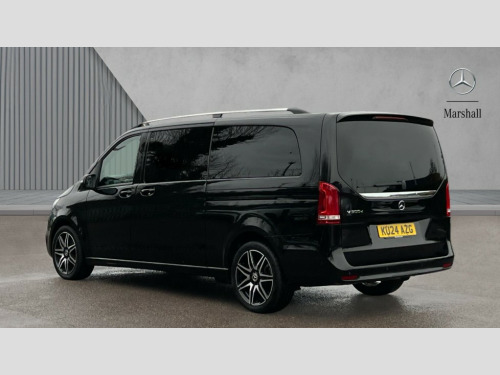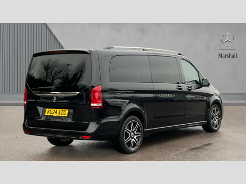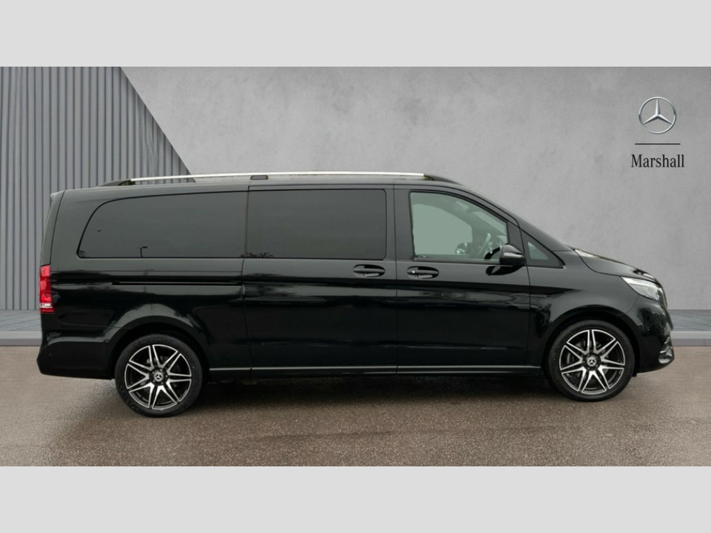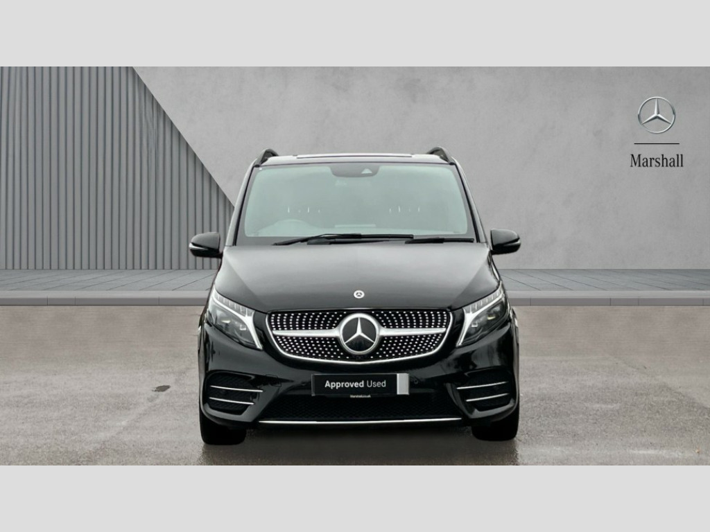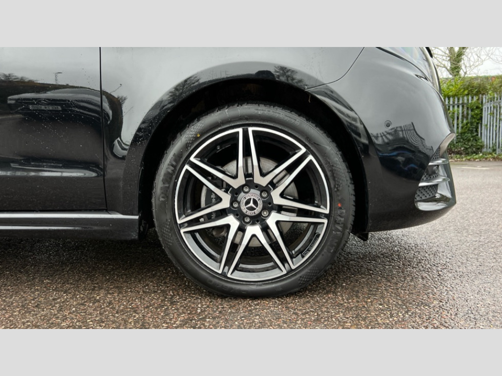 Mercedes-Benz V Class V300 d 237 AMG Line 5dr 9G-Tronic [Extra Long] Active parking assist, Agility select with a choice of driving modes (Comfort, ECO, Sport, Individual), Attention assist, Brake wear warning display, Cruise control with speedtronic variable speed limiter, Direct steer speed sensitive steering, Easy-pack tailgate - Powered opening/closing automatically, ECO start/stop function, Instrument cluster with 5.5 inch colour display trip computer, MBUX multimedia nav with 10.25" touchscreen, Hey Mercedes intelligent voice control, 2 USB-C ports and mobile connectivity for up to 15 devices, MBUX personalised vehicle profiles, MBUX touchpad, Mercedes me connect including emergency call system, accident recovery, breakdown and maintenance management, Outside temperature display, Service indicator (ASSYST), Side wind assist system, Status display for rear seat belts in instrument cluster, 25 litres large AdBlue tank, 9G TRONIC 9 speed automatic transmission, Agility control comfort suspension, Diesel particulate filter, Audio 20 CD with integrated media interface, DAB Digital radio, Integrated radio aerial, iPod/iPhone + Bluetooth interface with handsfree function, Two USB ports and one SD Card slot in centre console, Adaptive brake lights, AMG bodystyling front apron and rear roof spoiler, AMG bodystyling rear apron, AMG bodystyling side skirts, Anodised roof rails, Automated headlamp assist, Automatically dimming exterior driver's mirror, Black tinted rear windows, Body colour bumpers, Body colour door mirrors, Chrome pins diamond radiator grille with integrated stars, Chrome trim to front bumper, Electric folding door mirrors + auto dimming rear view mirror, Electric front windows, one touch / obstruction sensor, Electric sliding door in both side, Electric ventilation windows in passenger compartment, Heated windscreen washers, Illuminated front door sill panels with Mercedes-Benz lettering, LED intelligent light system including integral LED daytime running lamps, LED tail lamps/brake lamps and indicators, Logo projection, Metallic paint, Privacy glass, Rain sensing windscreen wipers, Rear wiper, Split tailgate in opening rear window with chrome handle, 12V socket in boot/load compartment and rear passenger compartment, 3 colours ambient lighting, 3 seat bench in 2nd row, 3 seat bench in 3rd row, 3 spoke nappa leather steering wheel, Adjustable front seat head restraints, ARTICO leather upper dashboard with contrast stitching, Carpet floor covering in passenger compartment, Comfort driver and front passenger seats including armrest, Driver + front passenger lumbar support, Electric air heater system - 1.2 kW output, Extended seat rails, Footwell lighting with reading light and illuminated handle in rear compartment, Height/reach adjustable steering column, Lockable glove compartment, Luxury centre console with retractable cover + two cup holder + 12V socket + multimedia box, Multifunction steering wheel with audio controls and onboard settings, Nappa leather upholstery, Rear head restraints, Seat occupancy sensor for front passenger seat, Single front passenger seat, Sports pedals in brushed stainless steel with rubber studs, Stowage nets behind individual seats, Sunvisors with illuminated vanity mirrors, Thermatic 3 zone automatic climate control, Three stage heated front seats, Seat comfort pack - V Class, Towing pack - V Class, Urban Guard protection pack - V Class, 3 point seatbelts on all seats, Active brake assist, Adaptive brake system with HOLD function and brake drying in the wet, Airbags - sidebag for driver and front passenger with combined thorax/pelvis bag, Airbags - windowbag for driver and front passenger, Anti-lock braking system (ABS), Electric parking brake, Electronic Stability Programme, Hill start assist, Perforated front brake discs and brake calipers with Mercedes-Benz lettering, Rear child proof door locks, Tyre pressure monitoring system, Warning triangle and first aid kit, Central locking with interior switch, Chrome surround in electric key, Carbon look trim, Chrome air vent surrounds, 19" AMG 7 twin spoke alloy wheels, Space saver spare wheel with jack, Summer tyres