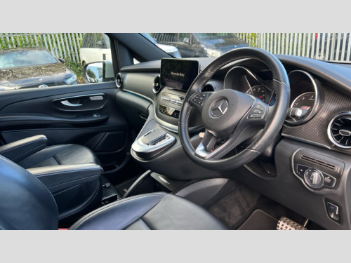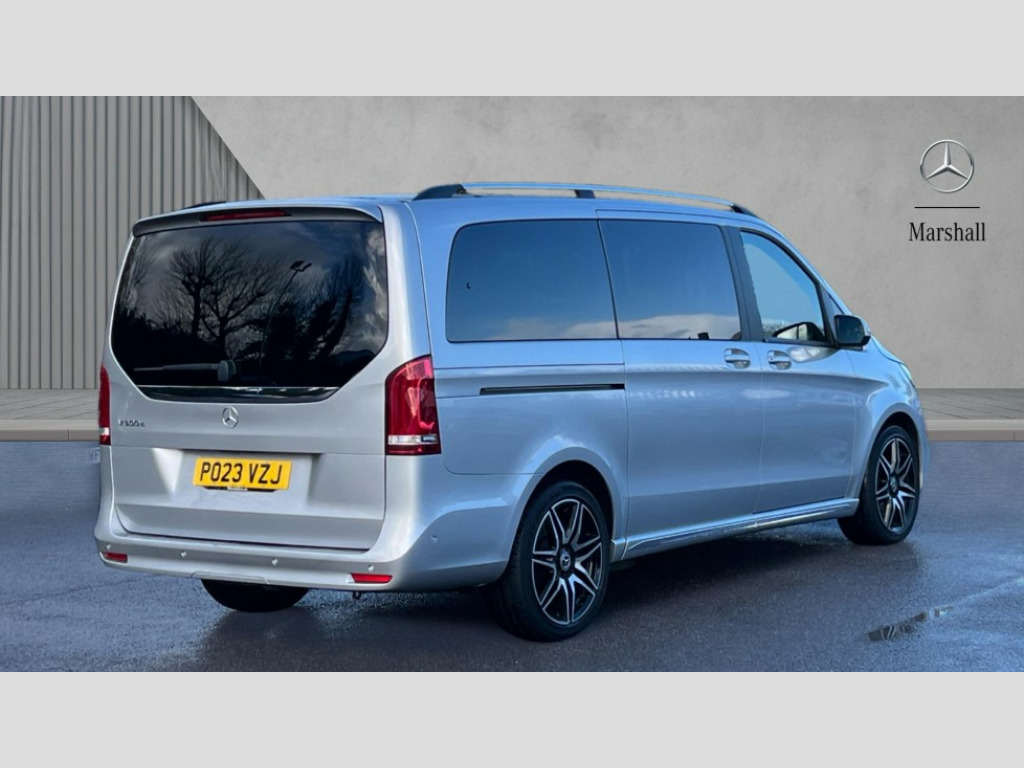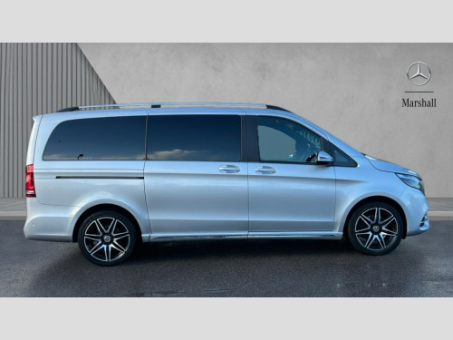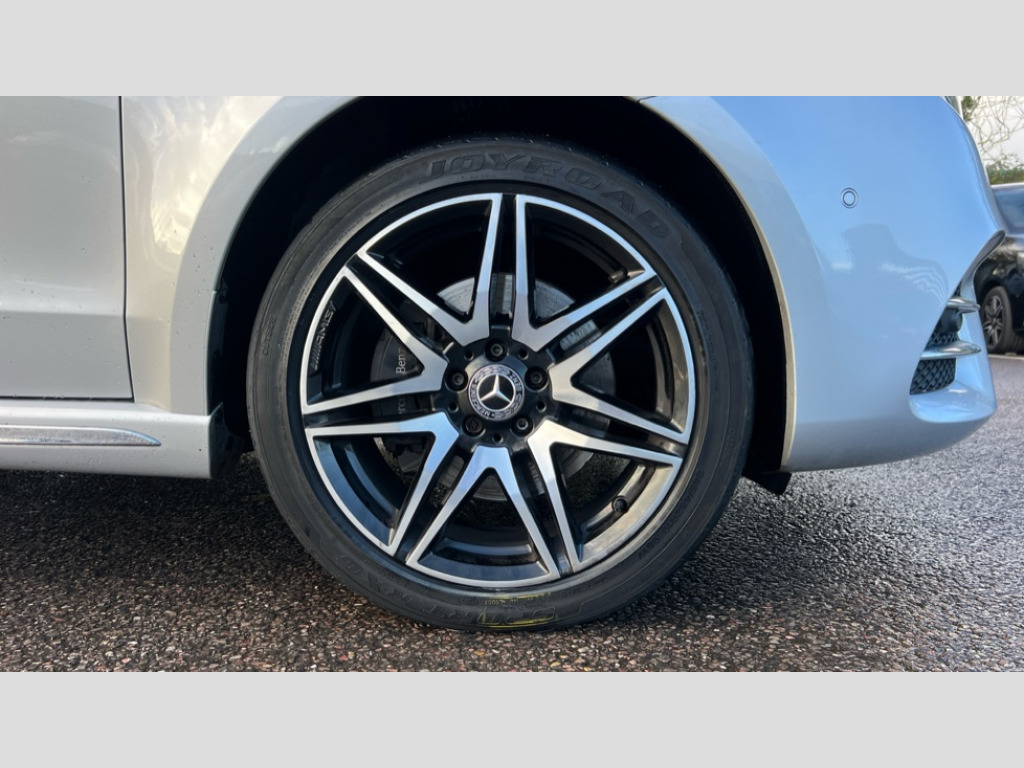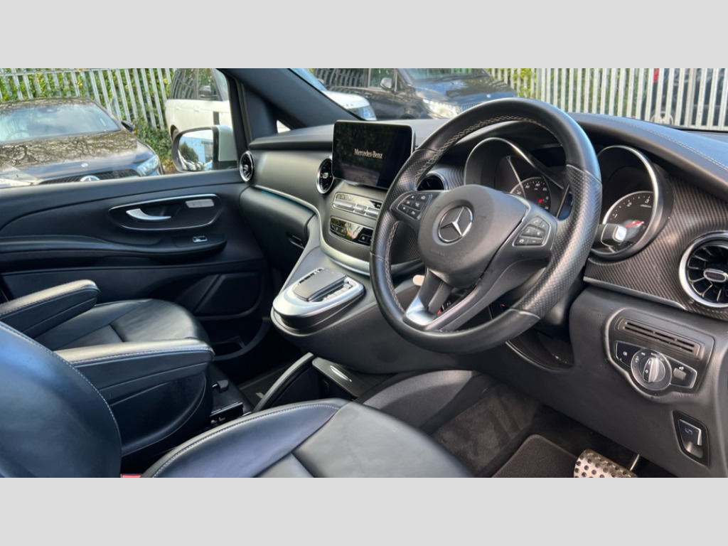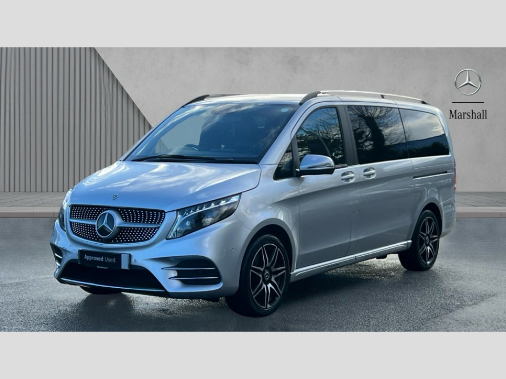 Mercedes-Benz V Class V300 d AMG Line 5dr 9G-Tronic [Long] Active parking assist, Attention assist, Brake wear warning display, DYNAMIC SELECT with a choice of driving modes (ECO, Comfort, Sport and Individual), Easy-pack tailgate - Powered opening/closing automatically, ECO start/stop function, Instrument cluster with 5.5 inch colour display trip computer, MBUX multimedia nav with 10.25" touchscreen, Hey Mercedes intelligent voice control, 2 USB-C ports and mobile connectivity for up to 15 devices, MBUX personalised vehicle profiles, Mercedes me connect including emergency call system, accident recovery, breakdown and maintenance management, Outside temperature display, Service indicator (ASSYST), Side wind assist system, Speed sensitive steering, Status display for rear seat belts in instrument cluster, 25 litres large AdBlue tank, 70 litre fuel tank, Agility control comfort suspension, Diesel particulate filter, DAB Digital radio, Integrated radio aerial, iPod/iPhone + Bluetooth interface with handsfree function, Two USB ports and one SD Card slot in centre console, Adaptive brake lights, AMG bodystyling front apron and rear spoiler, AMG bodystyling rear apron and chrome load sill, AMG bodystyling side skirts, Anodised roof rails, Automated headlamp assist, Black tinted rear windows, Body colour bumpers, Body colour door mirrors, Chrome pins diamond radiator grille with integrated stars, Chrome trim to front bumper, Electric folding door mirrors + auto dimming rear view + drivers exterior door mirror, Electric front windows, one touch / obstruction sensor, Electric sliding door in both side, Electric ventilation windows in passenger compartment, Heated windscreen washers, Illuminated front door sill panels with Mercedes-Benz lettering, LED intelligent light system including integral LED daytime running lamps, LED tail lamps/brake lamps and indicators, Metallic paint, Panoramic opening glass sunroof, Privacy glass, Rain sensing windscreen wipers, Split tailgate in opening rear window with chrome handle, 12V socket in boot/load compartment and rear passenger compartment, 3 colours ambient lighting, 3 spoke nappa leather steering wheel, Adjustable front seat head restraints, AMG brushed stainless steel sports pedals with rubber studs, ARTICO leather upper dashboard with contrast stitching, Carpet floor covering in passenger compartment, Comfort driver and front passenger seats including armrest, Driver + front passenger lumbar support, Electric air heater system - 1.2 kW output, Footwell lighting with reading light and illuminated handle in rear compartment, Height/reach adjustable steering column, Lockable glove compartment, Luxury centre console with retractable cover + two cup holder + 12V socket + multimedia box, Multifunction steering wheel with audio controls and onboard settings, Nappa leather upholstery, Rear head restraints, Seat occupancy sensor for front passenger seat, Stowage nets behind individual seats, Sunvisors with illuminated vanity mirrors, Thermatic 3 zone automatic climate control, Three stage heated front seats, Anti theft protection pack - V Class, 3 point seatbelts on all seats, Active brake assist, Adaptive brake system with HOLD function and brake drying in the wet, Airbags - sidebag for driver and front passenger with combined thorax/pelvis bag, Airbags - windowbag for driver and front passenger, Anti-lock braking system (ABS), Child proof door locks, Electric parking brake, Electronic Stability Programme, Hill start assist, Perforated front brake discs and brake calipers with Mercedes-Benz lettering, Tyre pressure monitoring system, Warning triangle and first aid kit, Central locking with interior switch, Chrome surround in electric key, Carbon trim, Chrome air vent surrounds, 19" AMG 7 twin spoke alloy wheels, Space saver spare wheel with jack