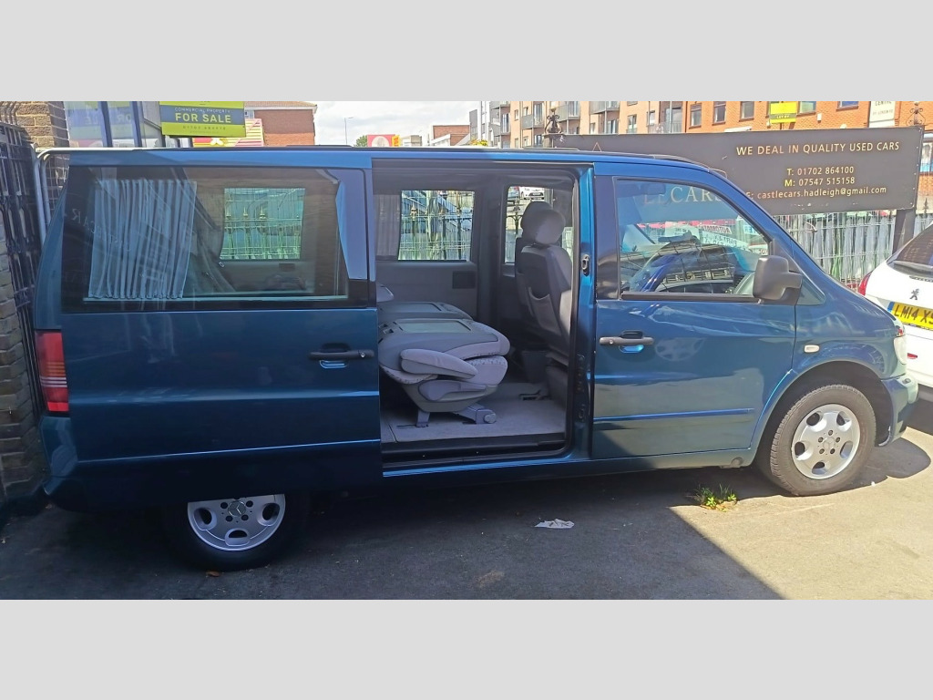 For sale is a well-maintained 1997 Mercedes-Benz V Class V230 TREND 5-Door MPV car, finished in a classic and sophisticated Turquoise. This spacious and reliable vehicle has clocked 67000 miles and runs on petrol with a smooth automatic transmission. With 5 doors 2 of which are side sliding doors and seating for all the family comprises of 6 seats 2 of which holf folding picnic tables front seats swivel 360 degrees, this MPV vehicle is perfect for practicality and comfort. Boasting 5 previous registered keeper(s), the car has been looked after and is in immaculate condition for its age. The Mercedes-Benz V Class V230 TREND is a versatile and stylish choice for anyone in need of a quality family car that doesn't compromise on performance or luxury. This car represents great value and is ready for its next adventure.The Engine has been maintained vigorously irrespective of cost, Engine is renowned to be one of the best Mercedes engines ever produced for its reliability people say its a bullet proof engine. r conditioning, bluetooth connection, air bag, immobiliser, locking wheel nuts, privacy glass, radio/cd, front armrest, folding rear seats, rear armrest, rear headrests, seat-back tables, electric sunroof, sunroof, twin sunroofs, alloy wheels, colour coded body, metallic paintwork, rear wash/wipe