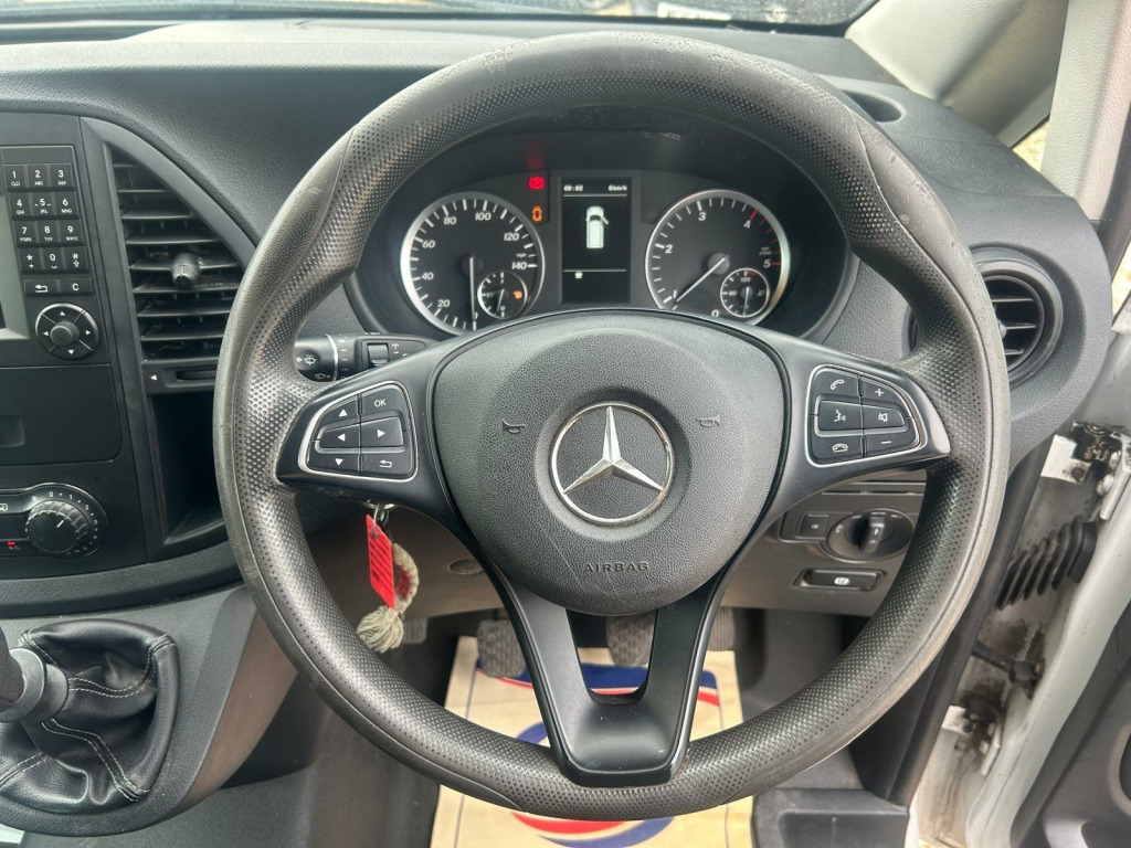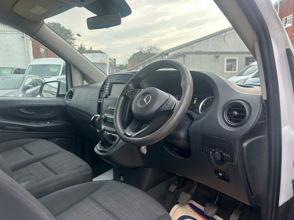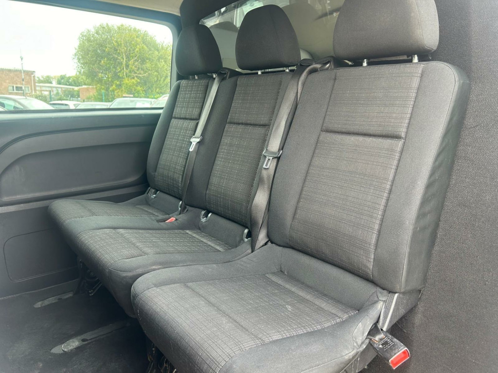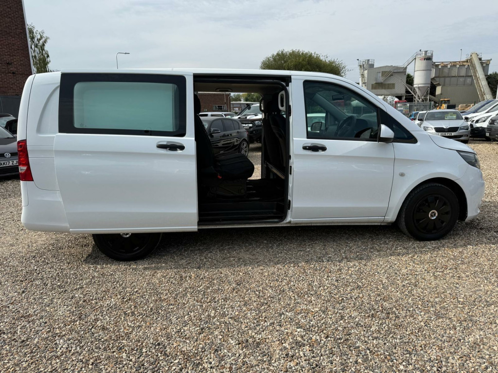 Discover this 6 seater 2016 Mercedes-Benz Vito 111 CDI Crew Van, a long wheelbase L2 model with a remarkably low mileage of just 95,000 miles for its age. This front wheel drive van is powered by an efficient 1.6 litre diesel engine, offering an impressive fuel economy of 46 miles per gallon. It comes equipped with an air conditioning, cruise control, Bluetooth interface, allowing for hands free telephone calls, and also provides Bluetooth audio streaming for your entertainment on the go.This Vito 111 CDI stands out with its excellent fuel efficiency, achieving 46 mpg, which is a significant advantage for running costs compared to many other Kombi vans. The combination of its low mileage, the reputable Mercedes-Benz build quality, and the practical crew van setup makes this a compelling choice for those seeking reliability and versatility.. 16in Steel Wheels, 5.8in TFT Colour Display, ABS - Anti-Lock Braking System, ASR - Anti-Slip Regulation, ATTENTION Assist, Adaptive Brake Lamps, Adaptive ESP - Electronic Stability Programme, Airbag - Driver, Airbag - Front Passenger, Audio 15, Aux-in Socket, BAS - Brake Assist, Battery - Uprated to 95Ah, Bluetooth Connectivity - Audio Streaming, Bluetooth Interface for Hands-Free Telephone, Cleaning Fluid Level Warning Light, Crosswind Assist, Cup Holder - Front x2, Daytime Running Lights, Doors - Twin Sliding Side - Glazed, Drivers Seat - Height-Adjustable, EBD - Electronic Brakeforce Distribution, Electric Parking Brake, Electric Windows - Front, Grab Handles in Rear, Headlights - Halogen, Heating-Cooling Air Duct to Passenger Compartment, High Level Third Brake Light, Hill Start Assist, Illuminated Glove Compartment, Immobiliser, Live Traffic Information, Load Securing Rings in Luggage Compartment, Lockable Glove Compartment, Luxury Interior Trim, Power Assisted Steering, RDS Radio, Remote Central Locking, Rescue Assist Sticker with QR Code, Roof - Full Length Interior Roof Trim, SD Memory Card Slot, SPEEDTRONIC Cruise Control, Seat Belt Pre-Tensioners - Front, Seat Belt Reminder - Front, Service Indicator ASSYST, Single Passenger Seat, Speedtronic Variable Speed Limiter, Steering Wheel - 3-Spoke Multifunction, Stowage Compartments Beneath the Windscreen x3, Suspension - Basic Plus, Tailgate with Window, Telephone Keypad, Trip Computer, Tyre Pressure Monitoring System, USB Port, Warning Lights for Oil Level - Coolant Level - Brake Fluid - Brake Pads - Bulb Failure and Door Closure, Weight variant - uprating to 3050kg GVW, Windows - Glazed Rear Doors with Rear Window Heater and Wash-Wipe System, Windows - Left Side Sliding Door - Fixed, Windows - Right Side Sliding Door - Fixed, Wood-Composite Floor, iPod Interface, Heating - Air Conditioning Tempmatic - Automatic Temperature Control, Comfort Pack.