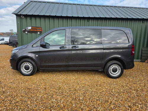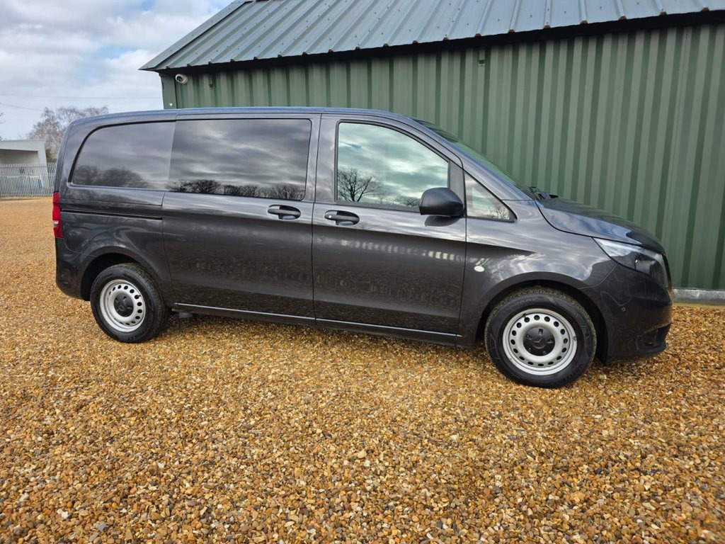 2021 71' Mercedes Benz Vito 110CDI Crew Van with 5 seats. This is a one owner Vito crew cab with Full service history and MOT until December 2026. In great condition and finished in metallic grey. Equipped with Satellite navigation, Air Conditioning and Cruise Control. As well as DAB Digital radio, Apple Play, Android Auto and USB and Bluetooth connectivity. It has easy access twin side sliding doors and a tailgate as well as front and rear parking sensors and a Reversing Camera. This vito is available to view here at Northants Van Centre, The Embankment, Wellingborough, NN8 1LD. 16in Steel Wheels, 6 speed, ABS - Anti-Lock Braking System, Accident Recovery and Breakdown Manageme, Active Brake ASSIST, Airbag - Co-Driver, Airbag - Driver, Anti-Theft Protection Package, Apple Play, ATTENTION Assist, Audio 30, Auto Headlamps, Black-Tinted Windows in Rear, Bluetooth, Colour-Coded Front and Rear Bumpers, Comfort Driver Seat, Comfort Overhead Control Panel, Crosswind Assist, Cruise Control, DAB Digital Radio, Door Mirrors - Heated and Electrically A, Double Co-Driver Seat, Double Locks, Electric Windows - Front, Electromechanical Steering, Front & Rear Parking Sensors, Halogen Fog Lights, Heat Insulating Glass, Lighting - Headlight Assistant, Lockable Glove Compartment,