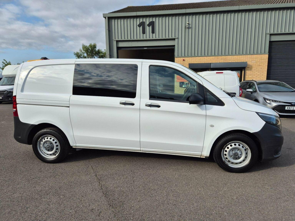 ** JUST ARRIVED, SUPERB CONDITION, AWAITING PREP** A VERY TIDY 6 SEAT VITO PROGRESSIVE COMPACT CREW VAN IN GLEAMING WHITE WITH LOW MILES AND FINANCE AVAILABLE. Hpi clear, 1750cc CDi Blue Efficiency 102bhp engine with 6 speed MANUAL gearbox and FRONT WHEEL DRIVE. FULL Spec includes CRUISE CONTROL, REVERSE CAMERA, electric windows and mirrors, REMOTE LOCKING, APP CONNECT, multifunction steering wheel and DRIVERS COMPUTER, TOUCH SCREEN MEDIA with USB / AUX / BT AUDIO, TWIN SIDE DOORS WITH PRIVACY GLASS, REMOVABLE FACTORY FITTED REAR SEATS and SOLID REAR TAILGATE DOOR. Just serviced and MOTd until JULY 2026 and with 6 MONTHS RAC PLATINUM WARRANTY and A YEARS FREE ROADSIDE ASSISTANCE INCLUDED. A SUPERB EXAMPLE IN EXCELLENT CONDITION THROUGHOUT AND LOOKS AND DRIVES BEAUTIFULLY. If you would like any further information or to arrange a test drive then please dont hesitate to give Andy a call. ** LICENSED CREDIT BROKER, FINANCE AND FULL DEALER FACILITIES AVAILABLE **