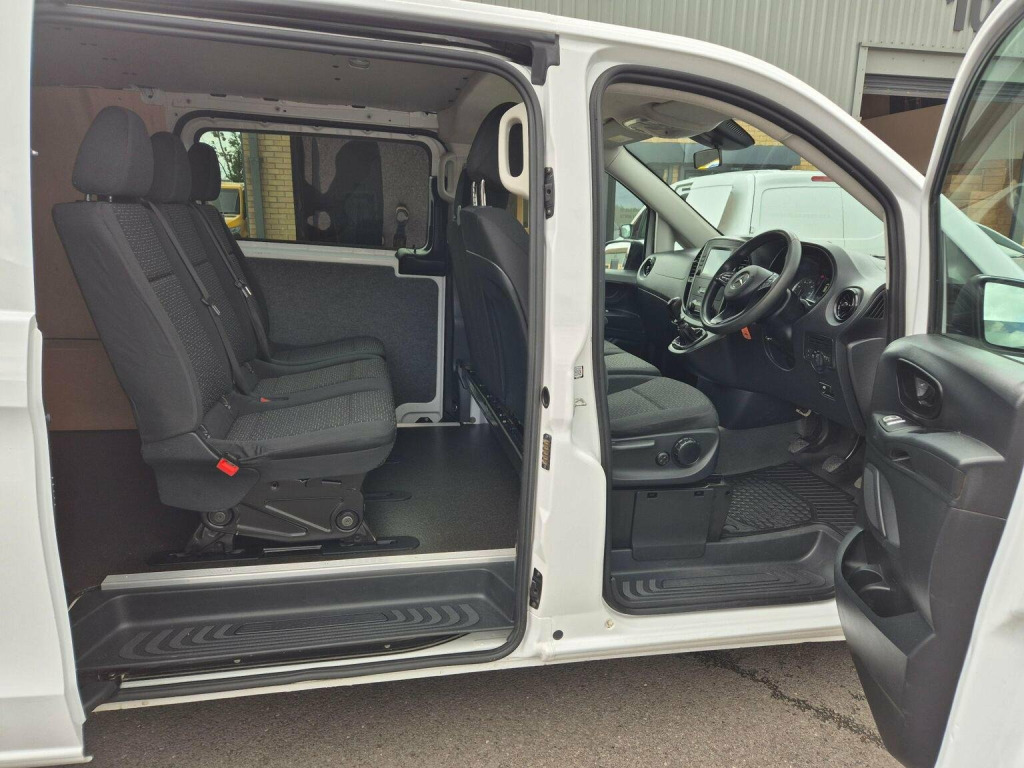 ** JUST ARRIVED, SUPERB CONDITION, AWAITING PREP** A VERY TIDY 6 SEAT VITO PROGRESSIVE COMPACT CREW VAN IN GLEAMING WHITE WITH LOW MILES AND FINANCE AVAILABLE. Hpi clear, 1750cc CDi Blue Efficiency 102bhp engine with 6 speed MANUAL gearbox and FRONT WHEEL DRIVE. FULL Spec includes CRUISE CONTROL, REVERSE CAMERA, electric windows and mirrors, REMOTE LOCKING, APP CONNECT, multifunction steering wheel and DRIVERS COMPUTER, TOUCH SCREEN MEDIA with USB / AUX / BT AUDIO, TWIN SIDE DOORS WITH PRIVACY GLASS, REMOVABLE FACTORY FITTED REAR SEATS and SOLID REAR TAILGATE DOOR. Just serviced and MOTd until AUGUST 2026 and with 6 MONTHS RAC PLATINUM WARRANTY and A YEARS FREE ROADSIDE ASSISTANCE INCLUDED. A SUPERB EXAMPLE IN EXCELLENT CONDITION THROUGHOUT AND LOOKS AND DRIVES BEAUTIFULLY. If you would like any further information or to arrange a test drive then please dont hesitate to give Andy a call. ** LICENSED CREDIT BROKER, FINANCE AND FULL DEALER FACILITIES AVAILABLE **