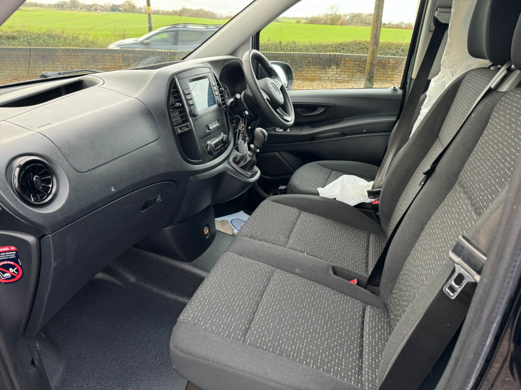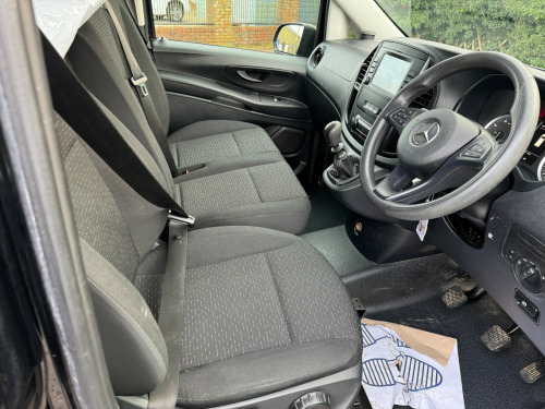 1 OWNER DIRECT FROM MAJOR LEASE COMPANY WELL MAINTAINED LIGHT USE SWB VITO IN BLACK SUPER VALUE, in steel wheels, colour-coded front and rear bumpers, door mirrors - heated and electrically adjustable, electric windows - front, heat insulating glass, spare wheel with jack, summer tyres, abs - anti-lock braking system, active brake assist, airbag - co-driver, airbag - driver, anti-theft protection package, crosswind assist, double locks, remote central locking, attention assist, cruise control, electromechanical steering, reversing camera, tyre pressure monitoring - wireless, accident recovery and breakdown management, audio 30, comfort driver seat, comfort overhead control panel, double co-driver seat, lockable glove compartment, multifunction steering wheel, rain sensor, seating - lumbar support for driver seat, steering wheel - rake and reach adjustment, twin sliding doors, wood load flooring, halogen fog lights, lighting - headlight assistant, twin side doors