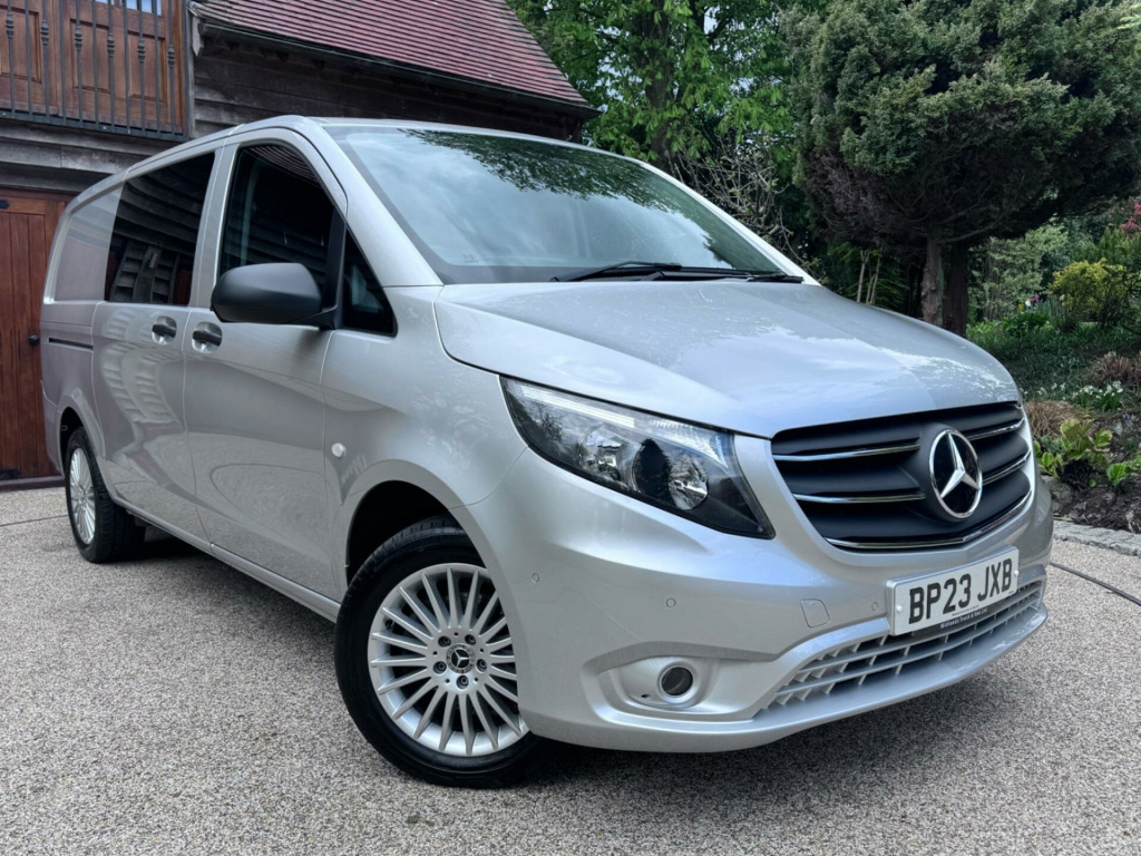 This is a 2023 Mercedes-Benz Vito 116 CDI Premium, a van equipped with a 2.0L diesel engine and a Premium trim. It's the 2.0 116 CDI Premium Crew Van G-Tronic RWD L2 Euro 6 (s/s) 5dr (LWB) derivative. The vehicle has a full service history and a clear vehicle history check. It comes with Audio 30, which includes Android Auto, Apple CarPlay, and Bluetooth connectivity. Manoeuvring is made easier with a reversing camera and rear parking assistance. The inclusion of TEMPMATIC air conditioning ensures a comfortable environment, and the headlight assistant provides automatic headlight activation for added convenience.The Mercedes-Benz Vito distinguishes itself through its comprehensive service record and verified clear history, offering reassurance of its well-maintained condition. The Premium trim adds a touch of sophistication, while the integrated smartphone connectivity enhances the driving experience. The reversing camera and parking assistance provide added safety and convenience, making parking in tight spots less stressful. The automatic headlights are a welcome addition, especially during unpredictable weather conditions.. 17in Alloy Wheels, ABS - Anti-Lock Braking System, ATTENTION Assist, Active Brake ASSIST, Air Conditioning TEMPMATIC, Airbag - Co-Driver, Airbag - Driver, Anti-Theft Protection Package, Audio 30, Chrome Radiator Grille, Colour-Coded Front and Rear Bumpers, Comfort Driver Seat, Crosswind Assist, Cruise Control, Double Co-Driver Seat, Double Locks, Electric Windows - Front, Electrical Components for Trailer Socket, Electrically Foldable Door Mirrors, Electromechanical Steering, Floor Mats - Velour, Front Fog Lights, Front Right Window Fixed in Side Wall - Sliding Door, Gross Vehicle Weight Uprate - 3.0t, Lighting - Headlight Assistant, Lockable Glove Compartment, Multifunction Leather Steering Wheel, PARKTRONIC System, Reversing Camera, Seating - Lumbar Support for Driver Seat, Twin Sliding Doors, Window - Liftgate - Rear-End Door with Wiper - Washer, Window Front Left - Fixed in Side Wall - Sliding Door. Full dealership history