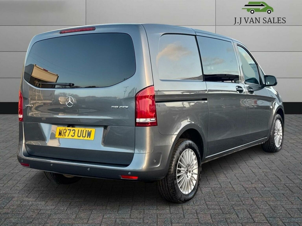 119 - SWB - PREMIUM - AUTOMATIC , IMMACULATE 119 PREMIUM L1 Mercedes Vito Dualiner. One previous owner, like new inside and out. Will leave us serviced and with 12m MOT, 190 BHP - AUTOMATIC - PREMIUM - L1 - HEATED SEATS - AIR CON - REVERSING CAMERA - AUTOMATIC, This 2023 Mercedes Benz Vito 2.0 119 CDI Premium Crew Van is a standout choice, boasting exceptionally low mileage for its age at just 19,731 miles, and having been owned by only one careful owner. This Euro 6 compliant vehicle is powered by a robust 2.0 litre diesel engine delivering an impressive 190 bhp, paired with a smooth G-Tronic automatic transmission and rear wheel drive. The Premium trim level ensures a well equipped experience, featuring a helpful reversing camera with parking assistance, automatic headlights with a headlight assistant, and the convenient Audio 30 system which includes Android Auto, Apple CarPlay, and Bluetooth connectivity. For comfort during any journey, it also comes with TEMPMATIC air conditioning. The highlights of this Vito Premium Crew Van demonstrate its superior offering compared to other vehicles in its class. The combination of its powerful 190 bhp engine and the efficient 2.0 litre diesel unit provides a strong performance without compromising on economy. The inclusion of the reversing camera and parking assistance offers enhanced safety and ease when manoeuvring, while the integrated Audio 30 system with smartphone mirroring capabilities keeps you connected and entertained. Furthermore, the TEMPMATIC air conditioning ensures a comfortable cabin environment for both driver and passengers, making this a practical and well appointed choice for a variety of needs.