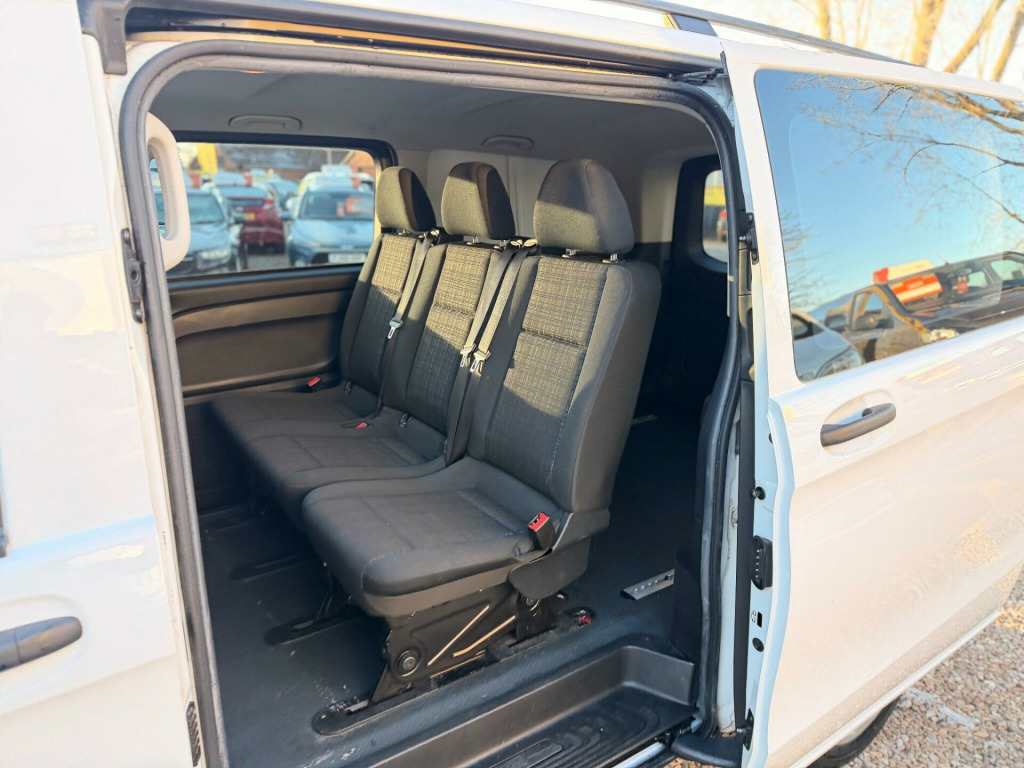 This 2017 Mercedes Benz Vito 2.1 114 CDI BlueTEC Crew Van RWD L2 Euro 6 (s/s) 5dr (LWB) is a well maintained example of this versatile vehicle. Powered by a 2.1 litre diesel engine, it meets the Euro 6 emission standards, ensuring efficient performance. This model comes equipped with Bluetooth connectivity, allowing for both audio streaming and hands free telephone calls, making it a practical choice for any professional.The Vito Crew Van offers a compelling combination of features that set it apart. Its Euro 6 compliant engine signifies a commitment to lower emissions, a benefit for both the environment and potential running costs. The inclusion of comprehensive Bluetooth functionality enhances driver convenience and safety by enabling seamless integration with mobile devices. This particular Vito is a robust and reliable option for those seeking a dependable commercial vehicle.. 16in Steel Wheels, 5.8in TFT Colour Display, ABS - Anti-Lock Braking System, ASR - Anti-Slip Regulation, ATTENTION Assist, Adaptive Brake Lamps, Adaptive ESP - Electronic Stability Programme, Airbag - Driver, Airbag - Front Passenger, Audio 15, Aux-in Socket, BAS - Brake Assist, Battery - Uprated to 95Ah, Bluetooth Connectivity - Audio Streaming, Bluetooth Interface for Hands-Free Telephone, Cleaning Fluid Level Warning Light, Crosswind Assist, Cup Holder - Front x2, Daytime Running Lights, Doors - Twin Sliding Side - Glazed, Drivers Seat - Height-Adjustable, EBD - Electronic Brakeforce Distribution, Electric Parking Brake, Electric Windows - Front, Grab Handles in Rear, Headlights - Halogen, Heating-Cooling Air Duct to Passenger Compartment, High Level Third Brake Light, Hill Start Assist, Illuminated Glove Compartment, Immobiliser, Live Traffic Information, Load Securing Rings in Luggage Compartment, Lockable Glove Compartment, Luxury Interior Trim, Power Assisted Steering, RDS Radio, Remote Central Locking, Rescue Assist Sticker with QR Code, Roof - Full Length Interior Roof Trim, SD Memory Card Slot, SPEEDTRONIC Cruise Control, Seat Belt Pre-Tensioners - Front, Seat Belt Reminder - Front, Service Indicator ASSYST, Single Passenger Seat, Spare Wheel with Jack, Speedtronic Variable Speed Limiter, Steering Wheel - 3-Spoke Multifunction, Stowage Compartments Beneath the Windscreen x3, Suspension - Basic Plus, Tailgate with Window, Telephone Keypad, Trip Computer, Tyre Pressure Monitoring System, USB Port, Warning Lights for Oil Level - Coolant Level - Brake Fluid - Brake Pads - Bulb Failure and Door Closure, Weight variant - uprating to 3050kg GVW, Windows - Glazed Rear Doors with Rear Window Heater and Wash-Wipe System, Windows - Left Side Sliding Door - Fixed, Windows - Right Side Sliding Door - Fixed, Wood-Composite Floor, iPod Interface. Full service history