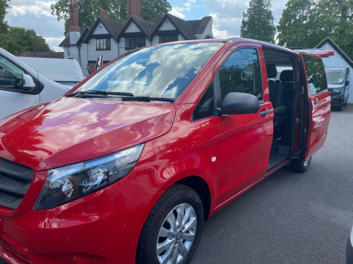 SOLD WITH WARRANTY This is a 2017 Mercedes-Benz Vito 114 CDI SELECT, a diesel van with a 2.1 litre engine. As the 2.1 114 CDI BlueTEC SELECT Tourer RWD L2 Euro 6 (s/s) 5dr (LWB) derivative suggests, this is a long wheelbase model. It comes with several features designed to enhance comfort and convenience, including air conditioning with automatic temperature control, automatic headlamp activation, and a Bluetooth interface for hands-free telephone calls and audio streaming. Having had only one owner from new, this Vito SELECT trim van offers a blend of practicality and technology.This Euro 6 emission class vehicle achieves around 44 miles per gallon, and emits only 171 grams of CO2 per kilometre, which means it is more efficient than similar vans. The 134 bhp engine provides a good balance of power and economy.. 16in Alloy Wheels - 10-Spoke Design, 5.8in TFT Colour Display, ABS - Anti-Lock Braking System, ASR - Anti-Slip Regulation, ATTENTION Assist, Adaptive Brake Lamps, Adaptive ESP - Electronic Stability Programme, Air Vents with Chrome Surround and Cruciform Nozzle, Airbag - Driver, Airbag - Front Passenger, Airbags - Thorax Sidebags for Driver and Passenger, Airbags - Window, Armrest on Inside of Drivers Seat, Armrest on Inside of Passengers Seat, Armrests to the Outer Side of the Seat Bench in the Passenger Compartment, Audio 15, Aux-in Socket, BAS - Brake Assist, Battery - Uprated to 95Ah, Bluetooth Connectivity - Audio Streaming, Bluetooth Interface for Hands-Free Telephone, Bumpers - Body Coloured, Carpeted Floor in Passenger Compartment, Chrome Interior Appointments Package, Cleaning Fluid Level Warning Light, Comfort Overhead Control Panel, Comfort Rear Passenger 3-Seat Bench - 1st Row, Comfort Rear Passenger 3-Seat Bench - 2nd Row, Crosswind Assist, Daytime Running Lights, Door Mirrors - Electrically Adjustable and Heated, Doors - Twin Sliding Side - Glazed, Drivers Seat - Height-Adjustable, EBV - Electronic Brakeforce Distribution, Electric Parking Brake, Electric Windows - Front, Gear Shift Trimmed in Leather, Handle for Entrance, Headlamp Assist - Automatic Headlamp Activation, Headlights - Halogen, Headrest - Enhanced, Heating - Air Conditioning Tempmatic - Automatic Temperature Control, Heating - Electrical Auxiliary Demister Heating Elements, Heating-Cooling Air Duct to Passenger Compartment, High Level Third Brake Light, Hill Start Assist, Illuminated Exits, Illuminated Glove Compartment, Illuminated Grab Handle in Rear, Immobiliser, Interior Door Handles - Edging and Controls - Chrome, Live Traffic Information, Lockable Glove Compartment, Outside Temperature Display, Power-Assisted Steering, RDS Radio, Rain Sensor, Reading Lights - Rear, Remote Central Locking, Rescue Assist Sticker with QR Code, Roof Panelling and Interior Panelling in Superior Quality, SD Memory Card Slot, SPEEDTRONIC Cruise Control, Seat - Passenger Height-Adjustable, Seat Belt Reminder - Front, Seat Rail System, Seats - Comfort Driver and Passengers with Armrest on the Inside and Enhanced Headrests, Service Indicator ASSYST, Single Passenger Seat, Spare Wheel - Steel, Speedtronic Variable Speed Limiter, Steering Wheel - Multi-Function, Steering Wheel - Rake and Reach Adjustment, Sun Visors with Illuminated Vanity Mirrors, Suspension - Comfort, Tailgate with Window, Telephone Keypad, Trip Computer, Tyre Pressure Monitoring System, USB Port, Warning Lights for Oil Level - Coolant Level - Brake Fluid - Brake Pads - Bulb Failure and Door Closure, Weight variant - uprating to 3050kg GVW, Windows - Fixed in Rear Quarter, Windows - Glazed Rear Doors with Rear Window Heater and Wash-Wipe System, Windows - Left Side Sliding Door - Fixed, Windows - Right Side Sliding Door - Fixed, Windows - Tinted Glass in all Factory Fitted Glazing, iPod Interface.