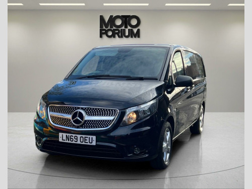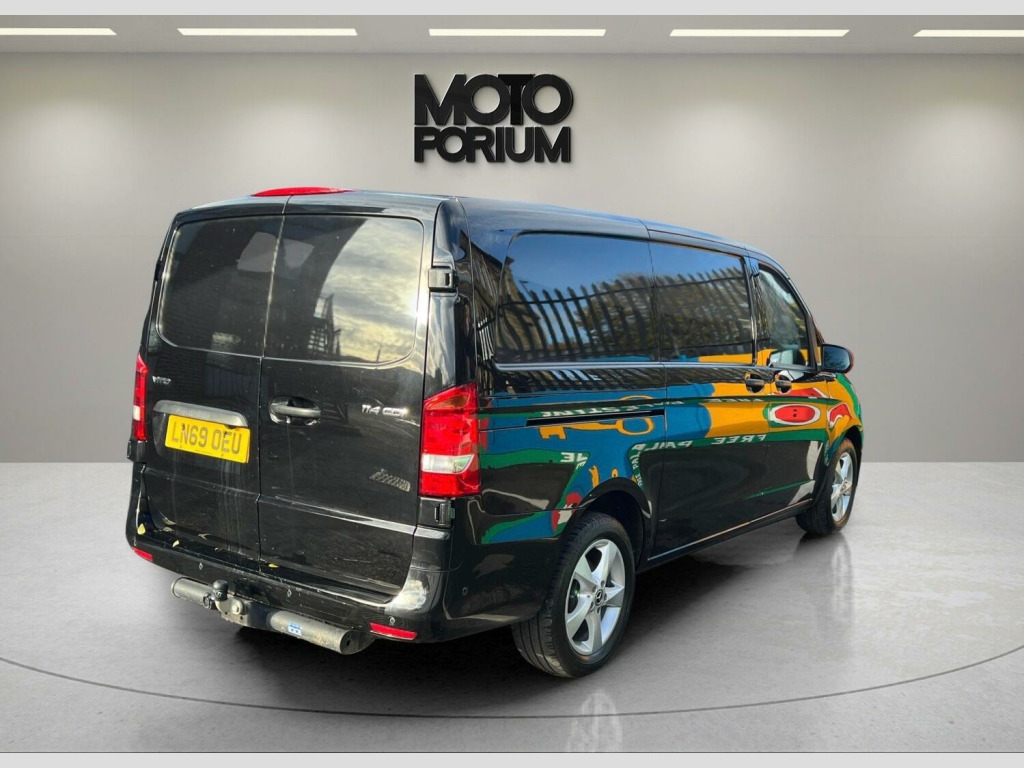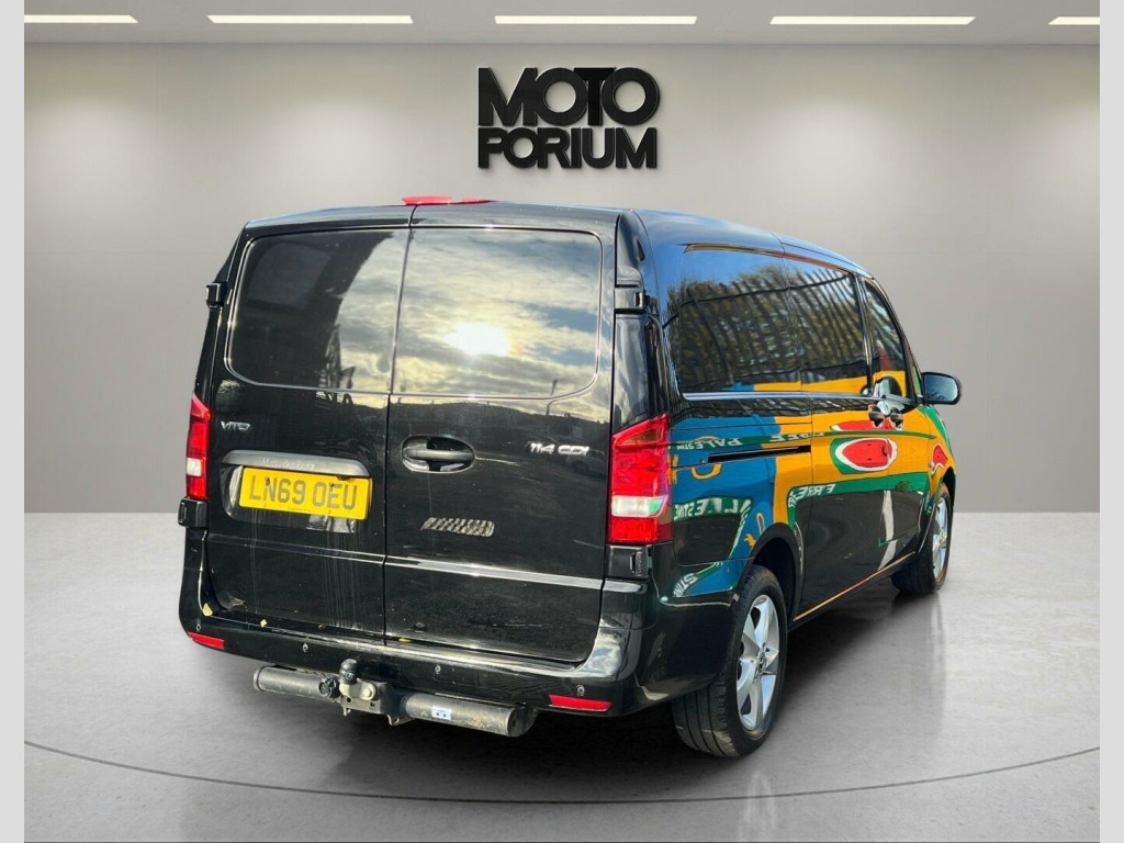 2019 Mercedes-Benz Vito 2.1 114 CDI Premium RWD L2 Euro 6 - 1 OWNER VAN - PREMIUM MODEL - LONG WHEEL BASE - DONE 92320 MILES IN BLACK - WITH BLACK INTERIOR - PARTIAL SERVICE HISTORY - FRESH PRE DELIVERY OIL SERVICE PROVIDED - REAR VIEW CAMERA - PARKING SENSORS - AIR CON - TOW BAR - ALLOY WHEELS - INTERNAL RACKING - CAN BE REMOVED - CLEAN BODY CONDITION HPI CLEAR VEHICLE -FINANCE AVAILABLE - NATIONWIDE DELIVERY SERVICE AVAILABLE - MANY MORE VANS IN STOCK -PLEASE VISIT OUR WEBSITE - WWW.MOTOPORIUM.COM. 17in Alloy Wheels - 5 Spoke Design, ABS - Anti-Lock Braking System, ASR - Anti-Slip Regulation, ATTENTION Assist, Accident Recovery and Breakdown Management, Active Parking Assist including PARKTRONIC, Air Conditioning TEMPMATIC, Airbag - Driver, Anti-Theft Protection Package, Audio 15, BAS - Brake Assist, Chrome Radiator Grille, Co-Driver Airbag, Colour-Coded Front and Rear Bumpers, Comfort Driver Seat, Comfort Overhead Control Panel, Cruise Control, Doors - Twin Sliding Side - Solid, Double Co-Driver Seat, Double Locks, EBD - Electronic Brakeforce Distribution, Electric Windows - Front, Electrically Foldable Door Mirrors, Electromechanical Steering, Floor Mats - Velour, Front Fog Lights, Gross Vehicle Weight Uprate - 2.8t, Halogen Fog Lights, Heat Insulating Glass, Hill Start Assist, Immobiliser, Leather Steering Wheel - Gear Knob and Gaiter, Lighting - Headlight Assistant, Lockable Glove Compartment, Multifunction Steering Wheel with Trip Computer, Pre-installation for Becker MAP PILOT, Remote Central Locking, Reversing Camera, Seating - Lumbar Support for Driver Seat, Steering Wheel - Rake and Reach Adjustment, Summer Tyres, Tyre Pressure Monitoring - Wireless, Washer Fluid Warning Light, Wood Load Flooring.