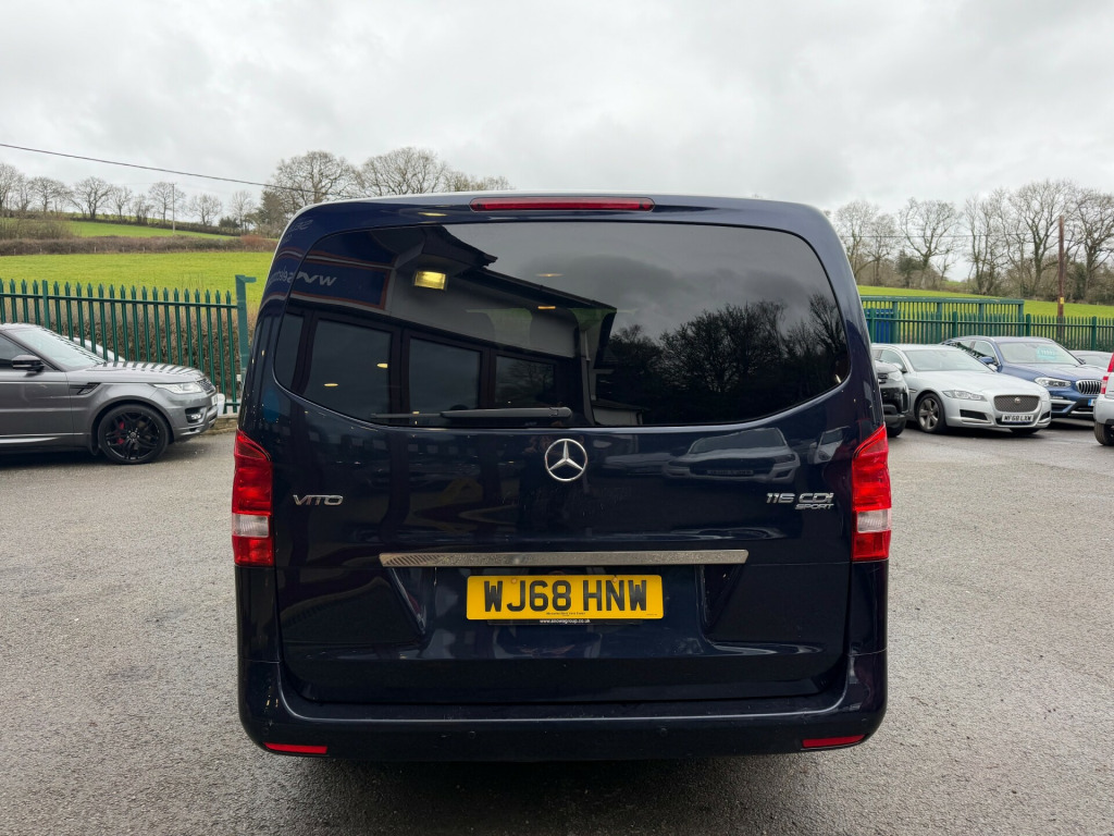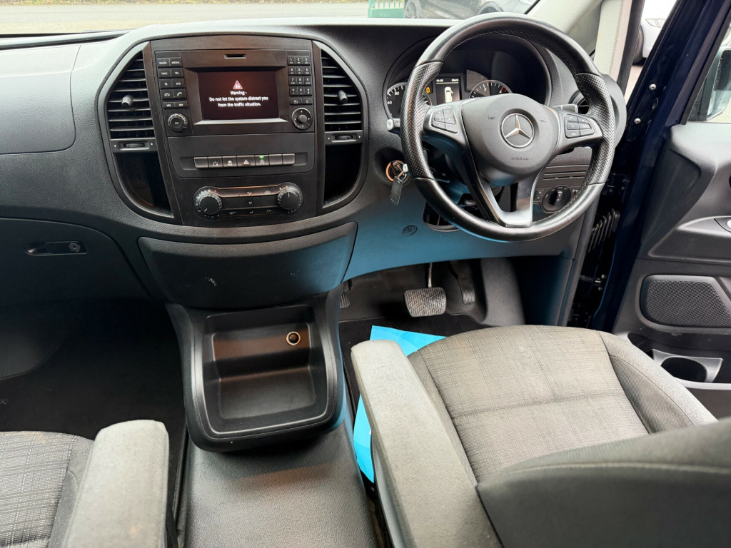 AWAITING PREPERATION This 2018 Mercedes-Benz Vito Combi Van, with 104863 miles on the clock, is a reliable and efficient diesel vehicle that comfortably seats 5 people with 5 doors and it is ULEZ compliant, making it a suitable choice for driving in urban areas. This model is equipped with a 2.1 116 CDI BlueTEC engine, delivering 163 ps of power and comes with a manual RWD transmission. Its spacious interior includes features such as 17in Alloy Wheels, Body Coloured Bumpers, Electric Windows, Full Length Interior Roof Trim, and a Spare Wheel with Jack. This versatile vehicle is built for practicality and performance, making it an ideal choice for both personal and professional use.- Supplied with 12 months MOT - Good service history - Finance available - Part exchange welcome , in alloy wheels - 5 spoke design, bumpers - body coloured, electric windows - front, roof - full length interior roof trim, spare wheel with jack, tailgate with window, windows - glazed rear doors with rear window heater and wash-wipe system, windows - left side sliding door - fixed, windows - right side sliding door - fixed, windows - tinted glass in all factory fitted glazing, 5.8in tft colour display, audio 15, aux-in socket, bluetooth connectivity - audio streaming, bluetooth interface for hands-free telephone, live traffic information, pre-wiring for becker map pilot navigation system, rds radio, sd memory card slot, telephone keypad, usb port, ipod interface, abs - anti-lock braking system, asr - anti-slip regulation, adaptive brake lamps, adaptive esp - electronic stability programme, airbag - driver, airbag - front passenger, bas - brake assist, crosswind assist, ebd - electronic brakeforce distribution, electric parking brake, hill start assist, immobiliser, remote central locking, seat belt pre-tensioners - front, seat belt reminder - front, attention assist, battery - uprated to 95ah, cleaning fluid level warning light, outside temperature display, power assisted steering, speedtronic cruise control, service indicator assyst, speedtronic variable speed limiter, suspension - basic plus, trip computer, tyre pressure monitoring system, warning lights for oil level - coolant level - brake fluid - brake pads - bulb failure and door closure, weight variant - uprating to 3050kg gvw, armrest on inside of drivers seat, armrest on inside of passengers seat, cup holder - front x2, doors - twin sliding side - glazed, drivers seat - height-adjustable, grab handles in rear, headrest - enhanced, heating - air conditioning tempmatic - automatic temperature control, heating-cooling air duct to passenger compartment, illuminated glove compartment, load securing rings in luggage compartment, lockable glove compartment, luxury interior trim, rescue assist sticker with qr code, seats - comfort driver and passengers with armrest on the inside and enhanced headrests, single passenger seat, steering wheel - 3-spoke multifunction, steering wheel - rake and reach adjustment, stowage compartments beneath the windscreen x3, wood-composite floor, daytime running lights, headlamp assist - automatic headlamp activation, headlights - halogen, high level third brake light