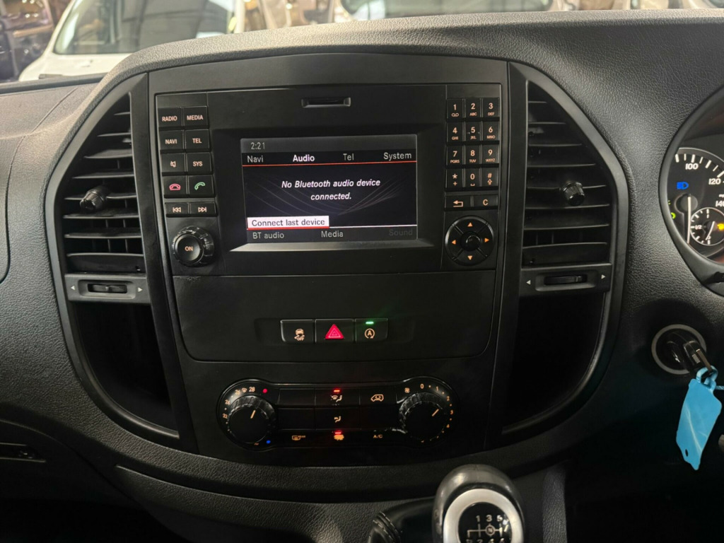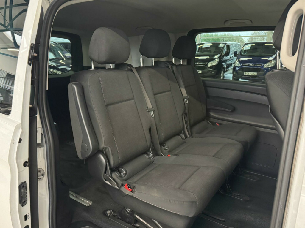 This 2019 Mercedes Benz Vito 2.1 116 CDI BlueTEC Sport Crew Van RWD L2 Euro 6 (s/s) 5dr (LWB) offers a blend of style and practicality. Powered by a robust 2.1 litre diesel engine, this Euro 6 compliant vehicle ensures efficient performance. The Sport trim level enhances its appeal, and you'll appreciate the convenience of Bluetooth connectivity for both hands-free calls and audio streaming. Comfort is also a priority, with Air Conditioning Tempmatic providing automatic temperature control, and Headlamp Assist ensuring your headlights activate automatically when needed.This Vito stands out with its well appointed Sport trim, offering a superior experience compared to standard models. The inclusion of automatic climate control and automatic headlights are thoughtful additions that enhance the driving experience. Its Crew Van configuration makes it a versatile choice, capable of transporting both passengers and cargo with ease. in alloy wheels - 5 spoke design, 5.8in tft colour display, abs - anti-lock braking system, asr - anti-slip regulation, attention assist, adaptive brake lamps, adaptive esp - electronic stability programme, airbag - driver, airbag - front passenger, armrest on inside of drivers seat, armrest on inside of passengers seat, audio 15, aux-in socket, bas - brake assist, battery - uprated to 95ah, bluetooth connectivity - audio streaming, bluetooth interface for hands-free telephone, bumpers - body coloured, cleaning fluid level warning light, crosswind assist, cup holder - front x2, daytime running lights, doors - twin sliding side - glazed, drivers seat - height-adjustable, ebd - electronic brakeforce distribution, electric parking brake, electric windows - front, grab handles in rear, headlamp assist - automatic headlamp activation, headlights - halogen, headrest - enhanced, heating - air conditioning tempmatic - automatic temperature control, heating-cooling air duct to passenger compartment, high level third brake light, hill start assist, illuminated glove compartment, immobiliser, live traffic information, load securing rings in luggage compartment, lockable glove compartment, luxury interior trim, outside temperature display, power assisted steering, pre-wiring for becker map pilot navigation system, rds radio, remote central locking, rescue assist sticker with qr code, roof - full length interior roof trim, sd memory card slot, speedtronic cruise control, seat belt pre-tensioners - front, seat belt reminder - front, seats - comfort driver and passengers with armrest on the inside and enhanced headrests, service indicator assyst, single passenger seat, spare wheel with jack, speedtronic variable speed limiter, steering wheel - 3-spoke multifunction, steering wheel - rake and reach adjustment, stowage compartments beneath the windscreen x3, suspension - basic plus, tailgate with window, telephone keypad, trip computer, tyre pressure monitoring system, usb port, warning lights for oil level - coolant level - brake fluid - brake pads - bulb failure and door closure, weight variant - uprating to 3050kg gvw, windows - glazed rear doors with rear window heater and wash-wipe system, windows - left side sliding door - fixed, windows - right side sliding door - fixed, windows - tinted glass in all factory fitted glazing, wood-composite floor, ipod interface