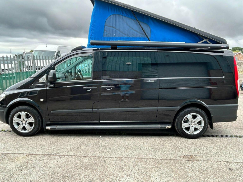 Was 17650, This 3.0 2.1 auto xlwb vito campervan is in preperation and is in outstanding condition for its year. The van has hoards of maintenance history. This is a professionally built campervan with great options. Postoperative added in 2p18 with extra strength canvas and hinges. This van has all the options you want with a campervan of this size which include leather caption seats with passenger swivel, aircon up front, fridge, hob and sink, rock n roll bed, poptop with extra durable canvas, webasco diesel night heater, awning with privacy tent, led lights, 150w solar panal woth mppt controller, carbon monoxide detector, vanguard door security, fully lined and Insulated. , Bodywork in exceptional condition for its age. The 3.0 engine give plenty of power for all terrains. Upgraded headunit. Sold with habitation check. Px consideredo