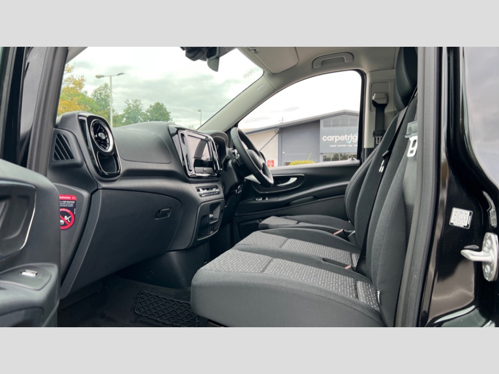 Cupholders Active lane keeping assist,Blind spot assist,Comfort overhead control panel,Cruise control,Electric power steering,Modern instrument cluster with 5.5" TFT color display,Wireless tyre pressure monitoring,2 way front and rear loudspeakers,Aux input socket,Digital radio (DAB),MBUX multimedia system with 10.25" touchscreen,Adaptive brake lights,Chrome radiator grille,Colour coded front and rear bumpers,Daytime running lights,Electric front windows,Electrically heated and adjustable wing mirrors,Exit lamps,Headlight assistant,Heat insulating glass,LED tail lamps, brake lamps and indicators,Multibeam LED with highbeam assist plus,Side sliding door - left,Side sliding door - right,Tailgate,Third rear brake light,12V outlets right and left for rear seat row,3 seater comfort bench in 2nd row with folding outer seat,Armrests for crew/passenger compartment,Comfort driver's seat,Driver's seat lumbar support,Electrical component for trailer socket,Front carpets,Front door storage pockets,Front footwell lights,Grab handles for drivers and co-driver doors,Grab handles in rear,Height adjustable head restraints,Height and rake adjustable steering wheel,Illuminated vanity mirrors with sunvisors,Interior ambient lighting,Interior panelling higher execution,Leather steering wheel,Locking glove compartment,Multifunctional steering wheel,Panelling under roof,Rear carpets,TPO Plastic flooring in passenger compartment,Anti theft protection pack - Vito,Chrome interior appointment pack - Vito,Mirror pack - Vito,Parking package with reversing camera - Vito,Smartphone integration package - Vito/Vito Tourer,3 point seatbelts for all seats,Accident recovery and breakdown management,Attention assist,Co-driver airbag,Co-driver thorax, pelvis and side airbag,Crosswind assist,Driver thorax, pelvis and side airbag,Driver's airbag,Mercedes-Benz emergency call system,Windowbags for driver and co-driver,12V outlets sockets,24 litre larger AdBlue tanks,70 litre fuel tank,9G tronic automatic gearbox,ABS/ESP/ASR,Active brake assist,Diesel particulate filter,EBV and BAS,Hill start assist,Mechanical parking brake,Speed limiter 210 km/h,Traction control,Uprated heavy duty battery - 95Ah
