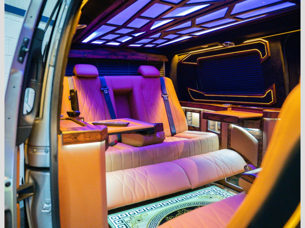 FULL VIP CONVERSION. TV, ELECTRIC TABLES, FRIDGE, CUSTOM INTERIOR CONTROLLED VIA CENTRE CONSOLE BUILT IN TABLET. Discover this 2018 Mercedes Benz Vito 114 CDI RWD L2, a reliable and efficient choice for your needs. This Euro 6 compliant model boasts a 2.1 litre diesel engine, offering a great balance of power and economy. It comes equipped with Bluetooth connectivity, allowing for both hands free telephone calls and audio streaming, ensuring you stay connected and entertained on the go.The Vito 114 CDI stands out with its practical L2 long wheelbase and rear wheel drive configuration, providing excellent load carrying capabilities and stable handling. Its Euro 6 emission class signifies its adherence to modern environmental standards. This vehicle is designed to offer a superior driving experience compared to other vans in its class, combining Mercedes Benz engineering with user friendly technology. in steel wheels, 5.8in tft colour display, abs - anti-lock braking system, asr - anti-slip regulation, attention assist, adaptive brake lamps, adaptive esp - electronic stability programme, airbag - driver, airbag - front passenger, audio 15, aux-in socket, bas - brake assist, battery - uprated to 95ah, bluetooth connectivity - audio streaming, bluetooth interface for hands-free telephone, bulkhead - full steel, cleaning fluid level warning light, crosswind assist, cup holder - front x2, daytime running lights, doors - twin rear doors - open to 180 degrees, doors - twin sliding side - solid, drivers seat - height-adjustable, dual front passenger seat, ebd - electronic brakeforce distribution, electric parking brake, electric windows - front, headlights - halogen, headrests - adjustable for twin co-driver, high level third brake light, hill start assist, illuminated glove compartment, immobiliser, live traffic information, load securing rings in luggage compartment, lockable glove compartment, power assisted steering, rds radio, remote central locking, rescue assist sticker with qr code, sd memory card slot, speedtronic cruise control, seat belt pre-tensioners - front, seat belt reminder - front, service indicator assyst, spare wheel with jack, speedtronic variable speed limiter, steering wheel - 3-spoke multifunction, stowage compartments beneath the windscreen x3, suspension - basic, telephone keypad, trip computer, tyre pressure monitoring system, usb port, warning lights for oil level - coolant level - brake fluid - brake pads - bulb failure and door closure, wood-composite floor, ipod interface