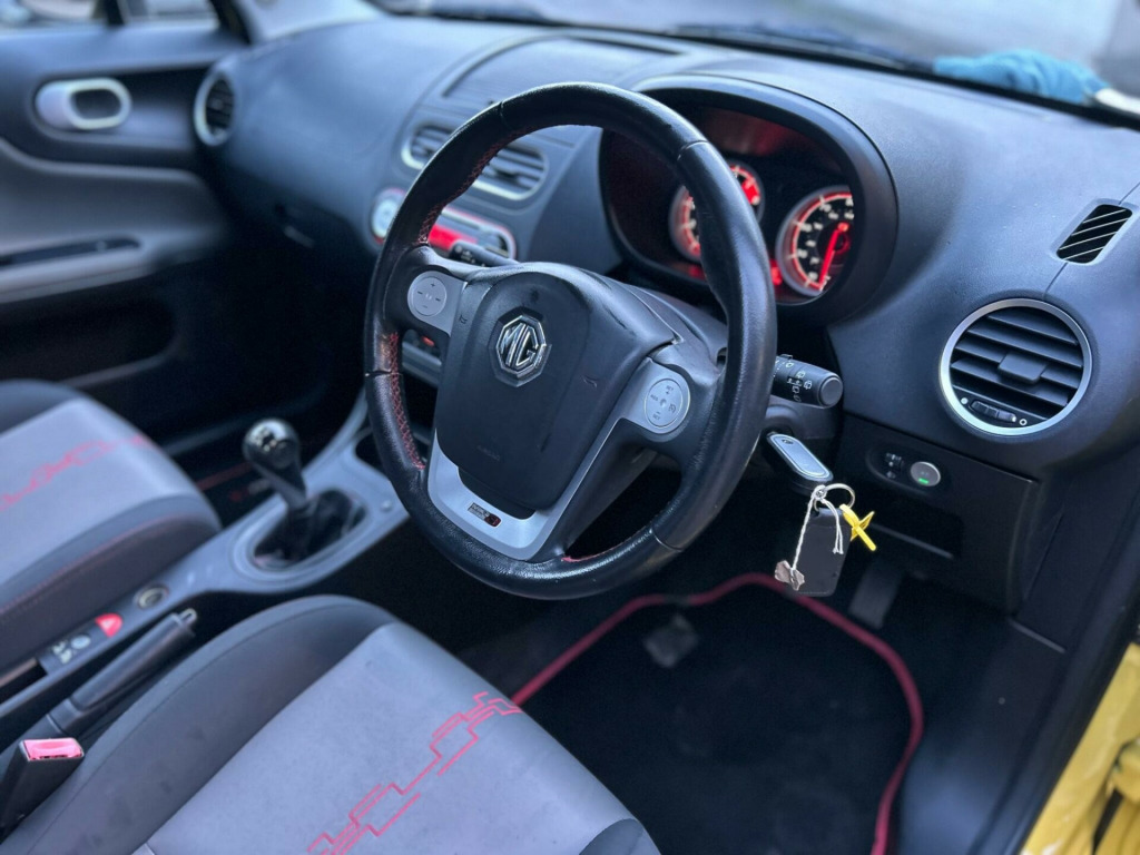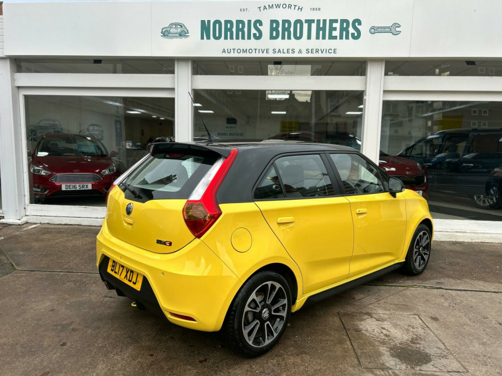 Finished in yellow with black contrasting roof and black/grey cloth trim, bluetooth connectivity, DAB touch screen radio tuner/CD player, rear parking sensors, air conditioning, cruise control, automatic headlight and wiper activation, electric windows, electric mirrors, multi function steering wheel, trip computer, USB/AUX input, Led daytime running lights, isofix child seat anchors, 16 inch alloy wheels, only 28,116 miles and 3 owners from new with full service history - 8 service entries.ALL OUR VEHICLES ARE AVAILABLE WITH NATIONWIDE EXTENDED WARRANTY. WE WANT YOUR PART EXCHANGE. PLEASE CALL FOR FURTHER INFORMATION. PART EXCHANGE CONSIDERED, COMPETITIVE HP/PCP FINANCE ARRANGED SUBJECT TO STATUS. MOT, MINOR SERVICE AND WARRANTY PROVIDED WHERE APPLICABLE - PLEASE ASK FOR MORE INFORMATION. 12v Socket - Front, 16in Alloy Wheels - Cut Diamond, 60-40 Folding Rear Seat with Armrest, ABS - Anti-lock Braking System, Air Conditioning - Electronic, Airbags - Curtain, Airbags - Driver, Airbags - Passenger, Airbags - Passenger Cut Off Switch, Airbags - Side, Automatic Headlights with Dusk Sensor, Automatic Rain Sensing Front Wiper, Aux Connection, Bluetooth - Audio, Bluetooth - Phone, Body Coloured Bumpers, Body Coloured Door Handles, Body Coloured Door Mirrors, Brake Disc Wiping, Brake Pad Wear Sensor, CBC - Cornering Brake Control, Courtesy Lighting - Front, Cruise Control, Cupholders - Front x 2 - Console, Cupholders - Rear x 1 - Console, DAB Radio, DRL - LED Daytime Running Lights, Deadlocks, Door Mirrors Heated with Powered Adjustment, Drive Away Locking, Driver's and Passenger Seat - Leg Adjustment, EBA - Emergency Brake Assist, EBD - Electronic Brake Force Distribution, Electric Windows - Front and Rear with Auto Up Down Function, Engine Drag Torque Reduction, Front Sport Design Grille, Front Variable Intermittent Wiper, Gear Change Indicator - Up and Down, Handles - Cool Silver Interior Detail, Heated Rear Window, High Level Brake Light, Hill Hold Brake System, ISOFIX Child Restraint Mounting for Rear Seats, Immobiliser, Instrument Surround - Cool Silver Interior Detail, Interior Trim - ZERO Design, Jack-Knife Key, MG Logo in Headlamps, MG3 Logo, MG3 Logo on Steering Wheel, MG3 badge on Speedomenter, Master Lock-Unlock, Parking Sensors - Rear, Passenger Seat Undertray, Power Assisted Steering, Projector Halogen Headlights, Rear Intermittent Wiper, Rear Sport Design Valance, Rear Tailgate Spoiler, Rear View Mirror - Day Night Adjustable, Red Stitching on Seats, Remote Central Locking, Seat Adjustment - Driver - Height, Seatback Pockets - Driver and Passenger, Seatbelt Reminder - Driver and Passenger, Side Impact Beams, Side Sills - Body Colour with Black Insert, Smartphone Dock Preparation, Speakers - 6, Square Tailpipe in Chrome, Stability Control System, Steering Wheel - MG Design Leather, Steering Wheel - Red Stitching, Steering Wheel - Three Spoke MG Design, Steering Wheel Adjustment - Reach, Steering Wheel Audio Controls, Stereo - CD - AM-FM Tuner and MP3 Compatibility, Trip Computer, Tunnel Design Instruments, Tyre Pressure Monitoring, Tyre Repair Kit, USB connection, Vanity Mirrors - Driver and Passenger, Vents - Cool Silver Interior Detail, iPod Integration. Full service history