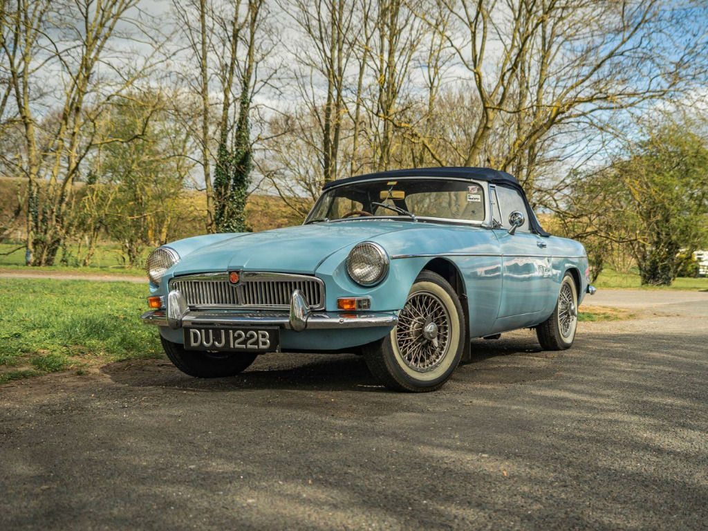 An outstanding early example of the iconic MGB Roadster. This 1964 MkI ‘pull handle’ model in Iris Blue is in fabulous condition both inside and out. , We understand that having spent its early life as a LHD expatriate in the USA, the car returned to the UK in 1993. In the late 1990s it underwent a full and comprehensive rebuild, transforming the original body shell and 3 bearing engine in to an absolutely stunning RHD car in beautiful Iris Blue that was treated to a further bare-metal respray two years ago and which has retained its A1 condition ever since. , Having been a winning show car and cosseted in a carpeted garage for most of its post-restoration years this Roadster remains rock solid, travelling little more than 2,000 miles over the last 10 years. , Mechanically, the car has been sympathetically improved: following a full rebuild, the engine now boasts 1840cc; the cylinder head treated to new double spring valves, part gas flowed and ported and topped-off with an alloy rocker cover; the rear suspension slightly lowered; V8 front suspension wishbones fitted; electronic fuel pump fitted; and the addition of a GES stainless steel exhaust offers a lovely rumble to underpin what is otherwise a very smooth drive. , Inside has been similarly lavished with care and attention - including the fitment of the period correct Radiomobile 970 †with the dark blue leather trim set-off beautifully by pale blue piping. The dark blue mohair top is in great condition with all fixtures and fixings in good working order. , This gorgeous Roadster not only looks fantastic but is a delight to drive. It comes with a Heritage Certificate, a comprehensive history file †which details practically each time the car has been touched since the early ‘90s †and will be sold with a new MOT so that it can be driven away and enjoyed!