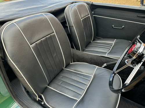 1964 MGB Roadster MK I Pull Handle. British Racing Green with Black leather upholstery and white piping. The MGB replaced the outgoing MGA in May 1962. It then remained in production until the Abingdon factory finally closed in 1980. Compared with the A the B was a more comfortable mode of transport all round with more legroom and generally more creature comforts like wind-up windows. Initially all the cars were roadsters and the suspension was slightly softer than the MGA, but it still handled well. Despite being an inch or two shorter than the A the interior space was better designed giving the passengers a bit more space plus there was now room for a more sensible amount of luggage when touring. But it carried on the wind in the hair tradition of the great British sports car and while by modern standards it is not particularly rapid, in its day its performance was regarded as brisk. The entire MGB range all used a version of the 1798 cc BMC Series B engine, which was a slightly enlarged version of the 1622cc Series A Engine. There are many articles that reference the unique features of an early Mk1 MGB – namely; pull door handles, 3 bearing engine, 3 synchromesh gearbox, banjo rear axle and large front wing gap between side light and grille. There are still plenty of MGBs out there so there is strong supply chain for all sorts of parts, over 500,000 variants of the MGB left the factory, however you will have to travel a very long way to find an example as fine as this. This outstanding B is exactly the same specification as it left the factory with in 1964 and as listed on the Heritage Certificate that is included in the vast history file that accompanies the car as well as a huge photographic album of the nut and bolt restoration. Also included are newspaper articles and photographs of the car winning Autoglym car of the show at The Festival of Transport. This is a car that wants for nothing and is possibly the best available and certainly the best we have seen. If you want a period correct MK I Pull Handle then this car is certainly worth considering. Although tax and mot exempt a fresh mot will be applied upon sale for your own peace of mind. Absolutely any inspection is welcome. All major debit and credit cards accepted. Part exchange considered. Free U.K mainland delivery. Please contact us for any further information. Lots more pictures and a video on our website and Facebook pages.