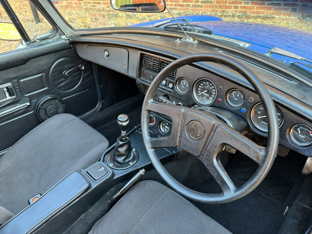 1977 MGB Roadster – Manual with Overdrive. Tahiti Blue with Black Cloth Upholstery and Black Hood, Presented in the ever-elegant Tahiti Blue, this 1977 MGB Roadster is a wonderfully honest and unspoilt example of one of Britains most beloved open sports cars. With manual transmission and overdrive operating in third and fourth gears, it delivers exactly the sort of engaging, relaxed driving experience that has made the MGB a classic for generations. This car has been with its last owner for seven years and has been used sparingly during that time, covering just over 1,000 miles and driven only on bright, sunny days. As a result, it presents very well and retains the character and charm that enthusiasts value so highly. Notably, it remains entirely standard, still to the same specification as when it left the factory some 48 years ago. Mechanically, it is in fine order. A recent service has included an oil and filter change, new spark plugs, new HT leads, new front brake calipers and four brand new tyres. On the road, the engine is strong with good oil pressure, the gearbox is smooth, and the overdrive engages exactly as it should, making this a pleasure both around town and on longer runs. Underneath, the car is very solid and has been wax-oiled from new, which is increasingly rare to find. Although now both tax and MOT exempt, a fresh MOT will be applied upon sale for the new owners peace of mind. Absolutely any inspection is welcome. The MGB makes an ideal starter classic, supported by one of the largest and friendliest owners communities in the classic car world. From technical advice and parts suppliers to club events, driving days, and regional gatherings, ownership is as social and rewarding as it is enjoyable. All major debit and credit cards are accepted. Part exchange is considered, and free UK mainland delivery is included. Further photographs and a walk-around video are available on our website and Facebook page. Please contact us for any additional information, this is a charming, usable, and correctly presented MGB Roadster, ready to be enjoyed.