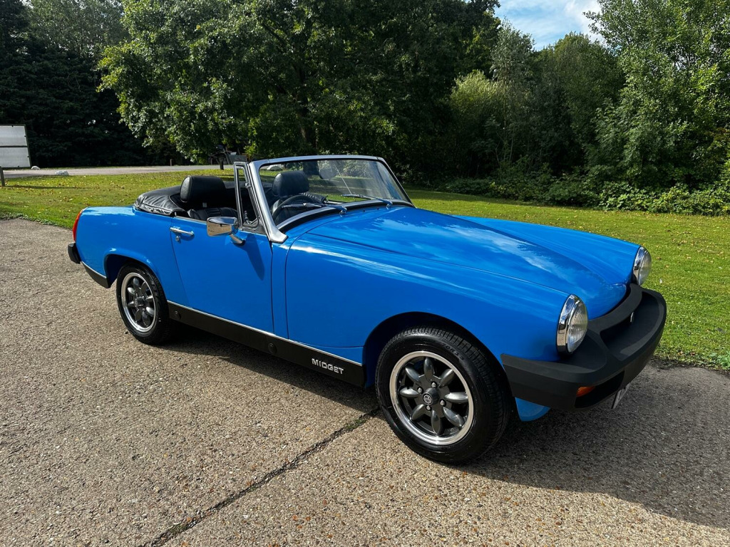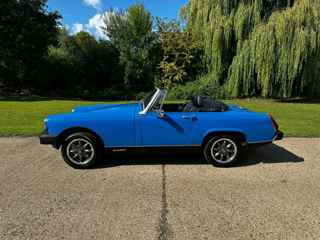 With us here at RFH Classics we are delighted to bring you this 1977 (S) MG Midget 1500 Roadster that has recently been the subject of a comprehensive restoration programme to both the exterior and interior. The exterior, which is finished in the period correct Tahiti Blue perfectly compliments the contrasting Black trim with the whole car presenting beautifully and ready to be enjoyed by a new owner. , To compliment the fresh exterior repaint the original MG Rostyle wheels have been upgraded with a new set of Anthracite and Chrome Minilite style wheels complete with new tyres which not only enhance the cars appearance but also improve its ride on the road. Under the bonnet sits the well proven 1500cc 4 cylinder lead free engine paired to a manual 4 speed gearbox. The engine fires into life easily with minimal choke and quickly settles to a smooth running unit with good oil pressure. As part of our preparation we have just completed an engine service, replaced the water pump as well as undertaking a fresh, independent MOT test which has no advisories and offers reassurance to the next owner. , During the restoration the interior was treated to a new set of Black vinyl seat covers, complete trim kit and then finished off with a new matching Black carpet set all of which come together to provide a clean and smart cabin. Protection from the elements is provided by a new vinyl roof which in this case features a zip down rear window, an unusual but desirable addition that is not often found on the Midgets. This charming Midget represents a wonderful opportunity for you to purchase a restored example in a very eye catching colour combination that offers a great entry into the classic car world. , RFH Classics are proud to be Bedfordshires largest independent classic car dealer with over 35 years of experience supplying quality vehicles you can buy with confidence. Our reputation is built on trust, excellent customer service and glowing reviews. This car qualifies for zero rated Historic Road tax and is a ULEZ exempt vehicle helping to make it a great and cost effective classic to own and maintain. , As a classic it is eligible for low cost classic car insurance and comes with the benefit of a 3 month major mechanical warranty. Our vehicles are sold clear of finance or insurance damage with a certificate of provided at handover, we do recommend using premium unleaded fuel for all our classic vehicles. If you are unable to visit our showroom, UK delivery is available as are export services, please ask for a quote. Our website has a walk around video of every vehicle in stock. Ready to find out more about this model? Book your viewing today, we look forward to hearing from you. , Call: 01462 338755, E Mail: [email protected], , #RFHClassics #ClassicCar #mgmidget #mgcars #ClassicCarSales #Bedfordshire