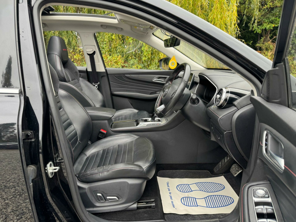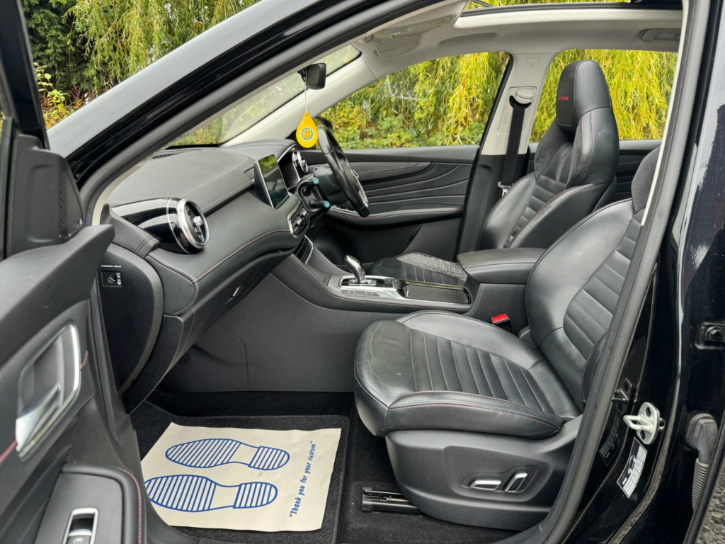 1 OWNER FROM NEWSERVICE HISTORY - 4 MAIN DEALER SERVICESLOGBOOKEURO 6K2Equipment:Navigation HDDParking Sensor(s)Climate ControlLeather Trim18'' Alloy WheelsPanoramic RoofThis 2021 MG HS T GDI Exclusive is a remarkable find, having been cherished by just one owner since new. This Euro 6 compliant plug in hybrid boasts a 1.5 litre petrol engine, offering an efficient and modern driving experience. The Exclusive trim level ensures a premium feel, enhanced by features such as a 360 degree parking camera system complete with parking assistance, and convenient heated front seating for those colder journeys.Further enhancing its appeal, this MG HS is equipped with automatic headlights that adjust to changing light conditions, and adaptive cruise control for more relaxed motorway driving. Rear parking sensors are also included, making manoeuvring in tight spaces significantly easier. These thoughtful additions demonstrate how this particular MG HS T GDI Exclusive offers a superior level of comfort and technology compared to other vehicles in its class. ather - red-black, 10.1in colour touchscreen, 12v power socket, 18in alloy wheels - hurricane - diamond cut, 2nd row 60-40 split fold seat, 2nd row seat with 2-stage incline adjustment, 360 degree parking camera, 6-speaker audio system, abs and ebd, arp - anti rolling protection, active emergency braking with pedestrian and bicycle detection, adaptive cruise control, airbags - side curtain, alarm & engine immobiliser, ambient lighting - adjustable colour, android auto, apple carplay, auto dimming rear view mirror, auto headlights, bi-function led headlight, blind spot monitoring, bluetooth connection, cbc - cornering brake control, dab radio, drl - led daytime running lights, drivers seat belt reminder, dual zone auto air conditioning, esp electronic stability programme, electric drivers 6-way adjustable seat with lumbar adjustment, electric parking brake with auto hold, electric passengers 4-way adjustable seat, electrically adjustable - folding - heated - body colour door mirrors, follow me home headlights, front centre sliding armrest with storage, front dual airbags, front fog lights, front passenger airbag deactivation switch, front seat belt height adjustment, front seatbelt 3 point pretensioner and load limiter, front side airbags, front and rear aero wiper, front and rear electric windows - one touch down on all windows, front and rear led sequential indicators, front and rear passenger seat belt reminder, full digital driver information display, heated front seating, hill descent control, hill launch assist, intelligent high beam assist, intelligent speed limit assist, keyless entry with push button engine start, led centre brake light, lane keep assist with lane departure warning system, leather steering wheel, metal sports pedals, panoramic sky roof, parking sensors - rear, power assisted steering, power tailgate, rain sensing wipers, rear cross traffic alert, rear headrest x3, rear isofix x2, rear seatbelt 3 point x3 outer pretensioner and load limiter, remote central locking, satellite navigation, silver roof rails, speed sensing locking, sports style front seats with one-piece back, steering wheel adjustment - height and reach, tpms - tyre pressure monitoring system, traffic jam assist, trip computer, tyre repair kit, usb mobile phone charging function
