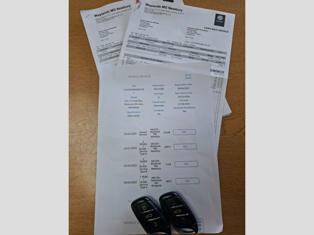 We are delighted to present for sale this 2021 MG HS T GDI Exclusive which offers the reassurance of a full dealership service history, with its last service completed on 25th February 2025 at 41,648 miles. This Euro 6 compliant 1.5 litre petrol plug in hybrid model comes with 12 months MOT provided on purchase, ensuring peace of mind for its next owner. The Exclusive trim level boasts a range of advanced features designed to enhance your driving experience, including a 360 degree parking camera with parking assistance, blind spot monitoring for added safety, and heated front seating for comfort in all conditions.Further enhancing its appeal, this MG HS is equipped with adaptive cruise control, allowing for more relaxed journeys on the motorway, and automatic headlights that adjust to changing light conditions. These features collectively demonstrate a higher specification compared to many other vehicles in its class, offering a more sophisticated and convenient drive. The plug in hybrid powertrain also presents an efficient and modern approach to motoring. All of our quality used vehicles are FULLY HPI CHECKED AND CLEAR AND WILL UNDERGO A COMPREHENSIVE 130 POINT PRE DELIVERY INSPECTION FOR YOUR PEACE OF MIND. Affordable finance options are available and we are currently paying £500 over Autotrader valuations on all part exchanges (subject to condition and history). If you have any questions or you would like to book a test drive please call Dan or Sarah on 01622 890933 and we will be happy to help. .1in colour touchscreen, 12v power socket, 18in alloy wheels - hurricane - diamond cut, 2nd row 60-40 split fold seat, 2nd row seat with 2-stage incline adjustment, 360 degree parking camera, 6-speaker audio system, abs and ebd, arp - anti rolling protection, active emergency braking with pedestrian and bicycle detection, adaptive cruise control, airbags - side curtain, alarm & engine immobiliser, ambient lighting - adjustable colour, android auto, apple carplay, auto dimming rear view mirror, auto headlights, bi-function led headlight, blind spot monitoring, bluetooth connection, cbc - cornering brake control, dab radio, drl - led daytime running lights, drivers seat belt reminder, dual zone auto air conditioning, esp electronic stability programme, electric drivers 6-way adjustable seat with lumbar adjustment, electric parking brake with auto hold, electric passengers 4-way adjustable seat, electrically adjustable - folding - heated - body colour door mirrors, follow me home headlights, front centre sliding armrest with storage, front dual airbags, front fog lights, front passenger airbag deactivation switch, front seat belt height adjustment, front seatbelt 3 point pretensioner and load limiter, front side airbags, front and rear aero wiper, front and rear electric windows - one touch down on all windows, front and rear led sequential indicators, front and rear passenger seat belt reminder, full digital driver information display, heated front seating, hill descent control, hill launch assist, intelligent high beam assist, intelligent speed limit assist, keyless entry with push button engine start, led centre brake light, lane keep assist with lane departure warning system, leather steering wheel, metal sports pedals, panoramic sky roof, parking sensors - rear, power assisted steering, power tailgate, rain sensing wipers, rear cross traffic alert, rear headrest x3, rear isofix x2, rear seatbelt 3 point x3 outer pretensioner and load limiter, remote central locking, satellite navigation, silver roof rails, speed sensing locking, sports style front seats with one-piece back, steering wheel adjustment - height and reach, tpms - tyre pressure monitoring system, traffic jam assist, trip computer, tyre repair kit, usb mobile phone charging function
