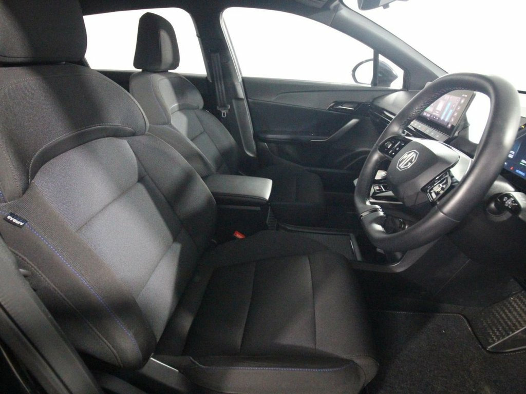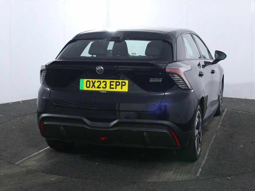 1 Owner. The 2023 MG4 64kWh SE Long Range is a standout electric hatchback that combines strong performance, impressive range, and great value, featuring a 203 ps electric motor that drives the rear wheels and a 64kWh battery (61.7kWh usable). This powertrain delivers an official WLTP combined range of 281 miles, though real-world summer driving typically sees around 253 miles, dropping to roughly 196 miles in winter conditions. It offers punchy acceleration with a 0-62 mph time of 7.9 seconds and a top speed of 100 mph, while its rear-wheel-drive chassis ensures agile and rewarding handling. Rapid charging at up to 135kW allows a 10-80% top-up in approximately 35 minutes at a 150kW DC charger, with a full home charge on a 7kW wallbox taking roughly 9 hours. Finished in Black Pearl with 17-inch alloy wheels featuring low wind resistance aero covers, projector LED headlights, and a rear spoiler, it presents a sharp and aerodynamic profile. The SE Long Range trim provides a well-equipped and functional interior, including a 10.25-inch floating colour touchscreen with iSmart connectivity, satellite navigation, Apple CarPlay, and Android Auto. The driver is served by a 7-inch full digital information display, a 6-way adjustable seat, and a leather steering wheel with height and reach adjustment. Practical features include 60/40 split-folding rear seats with three headrests, climate control, three USB ports (two front, one rear), and Vehicle-to-Load (V2L) charging capability, all 10.25in Floating Colour Touchscreen, 17in Alloy Wheels - with Low Wind Resist, 2nd Row 60-40 Split Fold Seat, 3 Rear Headrests, 3x USB Ports - 2 Front and 1 Rear, 4 Regenerative Braking Modes - Auto-1-2-, 4-Speaker Audio System, 5 Driving Modes - Eco-Sport-Snow-Custom-, 7in Full Digital Driver Information Disp, ABS and EBD, Active Emergency Braking with Pedestrian, Active Grille System - AGS, Adaptive Cruise Control, Airbags - Passenger Cut Off Switch, Alarm and Immobiliser, Android Auto, Apple CarPlay, Auto Headlights, Black Pearl, Climate Control, DAB+ Radio, Driver Attention Alert, Drivers 6-Way Adjustable Seat, Drivers Seat Belt Reminder, EBA - Emergency Brake Assist, Electrically Adjust