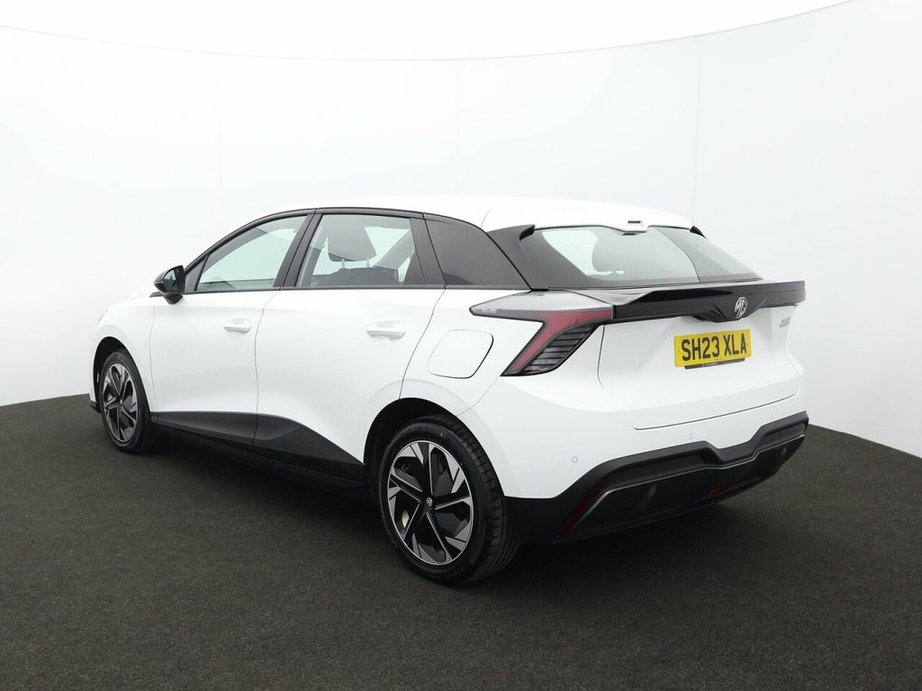 This 2023 MG MG4 SE Long Range electric vehicle presents a superb ownership proposition, having had only one owner since new. As an electric car, it offers a smooth and efficient driving experience, powered by a 64 kWh battery that provides a maximum range of 281 miles. Charging at home using a 7kW charger will take approximately 10 hours for a full charge, while rapid public charging can replenish the battery from empty to 80% in just 34 minutes. This model is equipped with projector LED headlights, climate control for your comfort, and Apple CarPlay for seamless smartphone integration. For added convenience and safety, it also features adaptive cruise control and rear parking sensors. The MG4 SE Long Range stands out with its impressive 281 mile maximum range, demonstrating its capability for longer journeys. Furthermore, its generous boot space ensures you have ample room for luggage or shopping, making it a practical choice for everyday use and holidays. These highlights, combined with its single owner provenance and advanced features, position this MG4 as a compelling option for those seeking an electric vehicle that offers both efficiency and everyday usability. 10.25in Floating Colour Touchscreen, 3x USB Ports - 2 Front and 1 Rear, 4-Speaker Audio System, 7in Full Digital Driver Information Disp, Android Auto, Apple CarPlay, DAB+ Radio, iSmart, Vehicle to Load Charging, 17in Alloy Wheels - with Low Wind Resist, Active Grille System - AGS, Electrically Adjustable - Heated - Black, Front and Rear Electric Windows with Dri, Rear Spoiler, Rear Wiper, Tinted Glass, 2nd Row 60-40 Split Fold Seat, 3 Rear Headrests, Climate Control, Drivers 6-Way Adjustable Seat, Height and Reach Adjustable Steering Whe, Passenger Grabhandles, Passengers 4-Way Adjustable Seat, Rear Grabhandles, Steering Wheel - Leather, Traffic Jam Assist, Arctic White, Auto Headlights, In