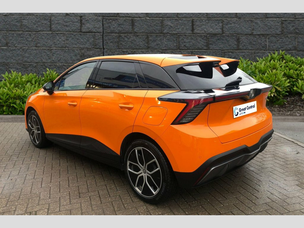 **** MG WARRANTY UNTIL JAN 2031 **** This 2024 MG MG4 Trophy Long Range electric vehicle presents an exceptional ownership proposition with its remarkably low mileage of just 3853 miles, a testament to its careful use by its sole owner. This electric hatchback boasts a substantial 64 kWh battery, offering a maximum range of 279 miles when new, ensuring your journeys are both extensive and efficient. Charging is convenient, with a full charge achievable at home using a 7kW charger in approximately 10 hours, and rapid public charging can take the battery from empty to 80% in as little as 34 minutes. For your peace of mind, the MOT is valid until January 2027. The MG4 Trophy Long Range is equipped with a suite of advanced features designed to enhance your driving experience and safety. These include Blind Spot Monitoring with Blind Spot Assistance, a 360 Degree Parking Camera system with Parking Assistance, and rear Parking Sensors for effortless manoeuvring. Stay connected and entertained with Android Auto integration, while Adaptive Cruise Control makes longer journeys more relaxed. These features, combined with the vehicle's electric powertrain and impressive range, position the MG4 Trophy Long Range as a superior choice for those seeking a modern, capable, and economical electric car. Leather Style with Cloth Inserts - Black, Volcano Orange, 10.25in Floating Colour Touchscreen, 18in Alloy Wheels - with Low Wind Resist, 2nd Row 60-40 Split Fold Seat, 3 Rear Headrests, 360 Degree Parking Camera, 3x USB Ports - 2 Front and 1 Rear, 4 Regenerative Braking Modes - Auto-1-2-, 5 Driving Modes - Eco-Sport-Snow-Custom-, 6-Speaker Audio System with 3D Sound, 7in Full Digital Driver Information Disp, ABS and EBD, Active Emergency Braking with Pedestrian, Active Grille System - AGS, Adaptive Cruise Control, Airbags - Passenger Cut Off Switch, Alarm and Immobiliser, Android Auto, Apple CarPlay, Auto Dimming Rear View Mirror, Auto Headlights, Blind Spot Monitoring, Climate Control, DAB+