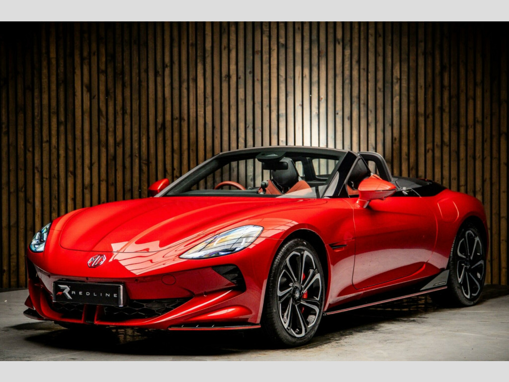 This 2024 MG Cyberster GT is a superb example, having had only one owner since new. This electric vehicle boasts a Four Wheel Drive drivetrain and a substantial 77 kWh battery, offering a maximum range of 276 miles on a full charge. For convenience, it can be fully charged at home using a 7kW charger in approximately 11 hours and 40 minutes, or achieve an 80% charge from empty in just 43 minutes at a public charging station. The Cyberster GT comes equipped with Adaptive Cruise Control, Bluetooth connectivity, Blind Spot Detection, and an impressive 8 speaker Bose Audio System. Parking is made easier with front and rear parking sensors.The MG Cyberster GT stands out with its generous boot space, providing ample room for your luggage or shopping. Its electric powertrain and advanced features like Blind Spot Detection and Adaptive Cruise Control demonstrate a commitment to both efficiency and driver assistance, setting it apart from other vehicles in its class. The inclusion of a premium Bose sound system further enhances the driving experience, making every journey more enjoyable.. 12v Power Socket, 20in Alloy Wheels - Jetstream Design, 2x USB Ports, 360 Degree Parking Camera, 4 Drive Modes - Comfort-Sport-Custom-Track, 4 Regenerative Braking Modes - Auto-1-2-3, 4 Way Adjustable Steering Wheel, 7in Central Colour Touchscreen, 8 - Speaker Bose Audio System, ABS - Anti-lock Braking System, Active Emergency Braking with Pedestrian and Bicycle Detection, Active Grille Shutter - AGS, Adaptive Cruise Control, Airbags - Driver, Airbags - Passenger, Ambient Lighting, Android Auto, Apple CarPlay, Armrest with Storage, Auto Dual Zone Climate Control, Auto LED Headlights, Automatic Speed Sensing Lock, BSD - Blind Spot Detection, Bluetooth, DAB Radio, Door Opening Warning - DOW, Driver and Passenger 6-Way Electrically Adjustable Seat with Memory Function, Driver and Passenger One Touch Electric Windows, Electric Lumbar Support, Electric Parking Brake with Auto Hold, Electric Scissor Doors, Electric Windows - All One-Touch Up/Down, Electrically Adjustable - Folding - Heated - Door Mirrors, Emergency Call, Follow Me Home Headlights, Forward Collision Warning, Front Passenger Airbag Deactivation Switch, Front Seat Belt 3-Point with Pretensioner and Load Limiter, Front and Rear Parking Sensors, Fully Electric Fabric Hood, Heated Rear Window, Heated Seats, Integrated Airbags, Intelligent Headlamp Control, Intelligent Speed Assist, Keyless Entry, LED Brake Light, LED Daytime Running Lights, LED Rear Lights, Lane Change Assist - LCA, Lane Keep Assist, Launch Control, Leather Style Multifunction Steering Wheel, Leather Style Sports Seats with Alcantara Inserts, Locking Wheel Nuts, Metal Sports Pedals, One Pedal Driving, Pedestrian Warning, Power Assisted Steering, Rain Sensing Wipers, Rear Cross Traffic Alert, Red Brake Calipers, Satellite Navigation, Seatbelt Reminder - Driver and Passenger, Steering Wheel - Heated, Steering Wheel Paddle Shifters, Sunglasses Storage, Sunvisors with Mirror and Light, Traffic Jam Assist, Type 2 Charging Cable, Tyre Repair Kit, Vehicle to Load, Voice Recognition, Volume Sensing Alarm, Wind Deflector, Wraparound 3 Screen Cockpit - 10.25in Driver Display and 2x 7in Auxiliary Screens Either Side, iSmart with Live Services.