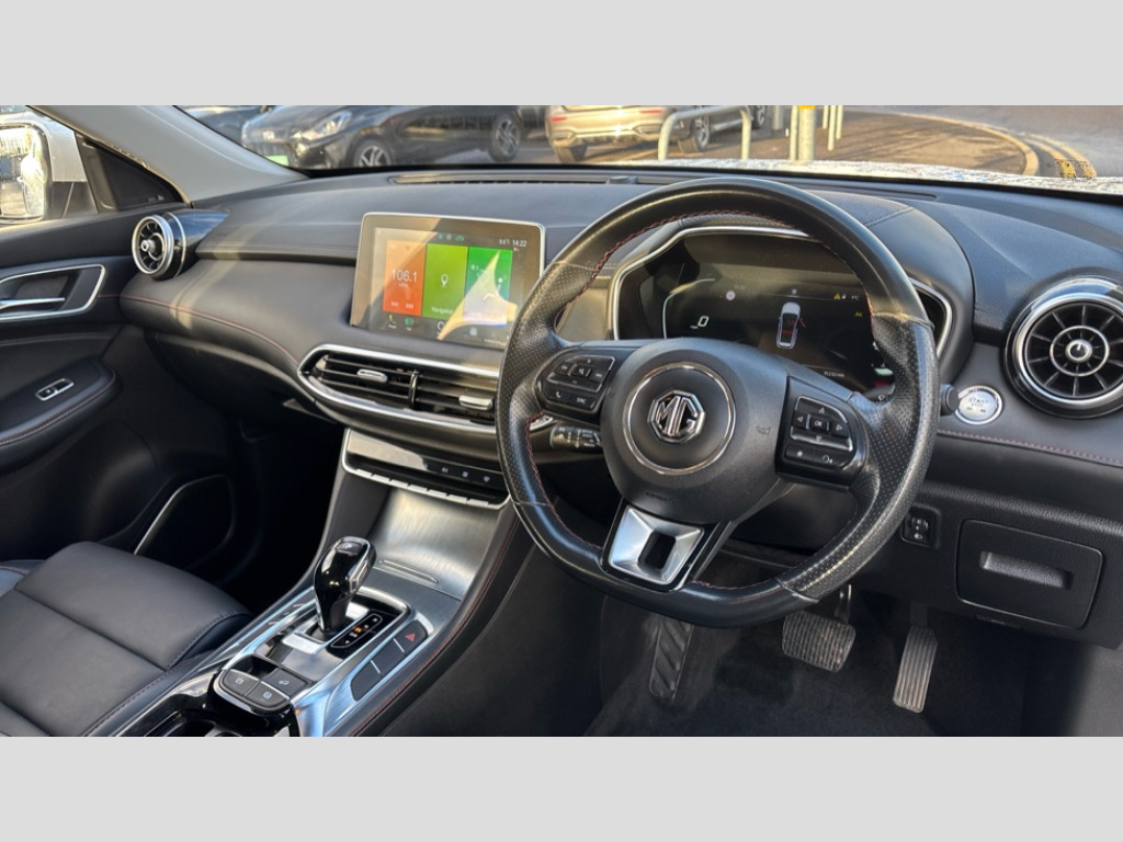 MG Hs 1.5 T-GDI Excite 5dr DCT 10.1" colour touchscreen, 12.3" Full digital driver information display, Adaptive cruise control, Android Auto, Apple CarPlay, Blind Spot Detection (BAS), Bluetooth connectivity, Emergency call service, Intelligent speed assist, Lane keep assist system (LAS) with Lane departure warning system (LDWS), PAS, Rear cross traffic alert, Rear parking camera, Rear parking sensors, Satellite navigation system, Traffic jam assist, Trip computer, USB mobile phone charging function, 4 speaker audio system, DAB audio, Auto dimming rear view mirror, Automatic headlights, Bi-function projection headlight, Body colour electric adjustable heated door mirrors, Electric folding door mirrors, Follow me home headlights, Front and rear aero wiper, Front and rear electric windows with one-touch up/down, Front fog lights, Intelligent high beam, LED centre brake light, LED daytime running lights, Rain sensing wipers, Rear side wing doors, Silver roof rails, 12V power sockets, 2nd row 60/40 split fold seat, 2nd row seat with 2 stage incline adjustment, 3 rear headrests, 3 seat bench in 2nd row, 4 way manually adjustable passenger seat with height, reach, tilt, backrest and headrest, 6 way manually adjustable driver's seat with lumbar support, Air conditioning, Front centre sliding armrest with storage compartment, Front headrests, Height and reach adjustable steering wheel, ISOFIX restraints on outer rear seats x2, Leather steering wheel, Leather style upholstery, Single passenger seat, 3x3 point rear seatbelts, ABS/EBD, Active emergency braking with pedestrian/Bicycle detection, Anti rolling protection, Cornering brake control (CBC), Drivers seatbelt reminder, Dual front airbags, Electric parking brake with auto hold function, ESP, Front and rear passenger seat belt reminder, Front passenger airbag deactivation switch, Front seat belt height adjuster, Front seatbelts (3-point + pretensioner + load limiter), Front side airbags, Hill descent control, Hill launch assist, Manual rear child locks, Rear outer seatbelt pretensioner and load limiter, Side curtain airbags, Tyre pressure monitoring system, Alarm system and engine immobiliser, Keyless entry and push button start system, Remote central locking, Speed sensing door locks, 18" Hurricane diamond cut alloy wheels, Tyre repair kit